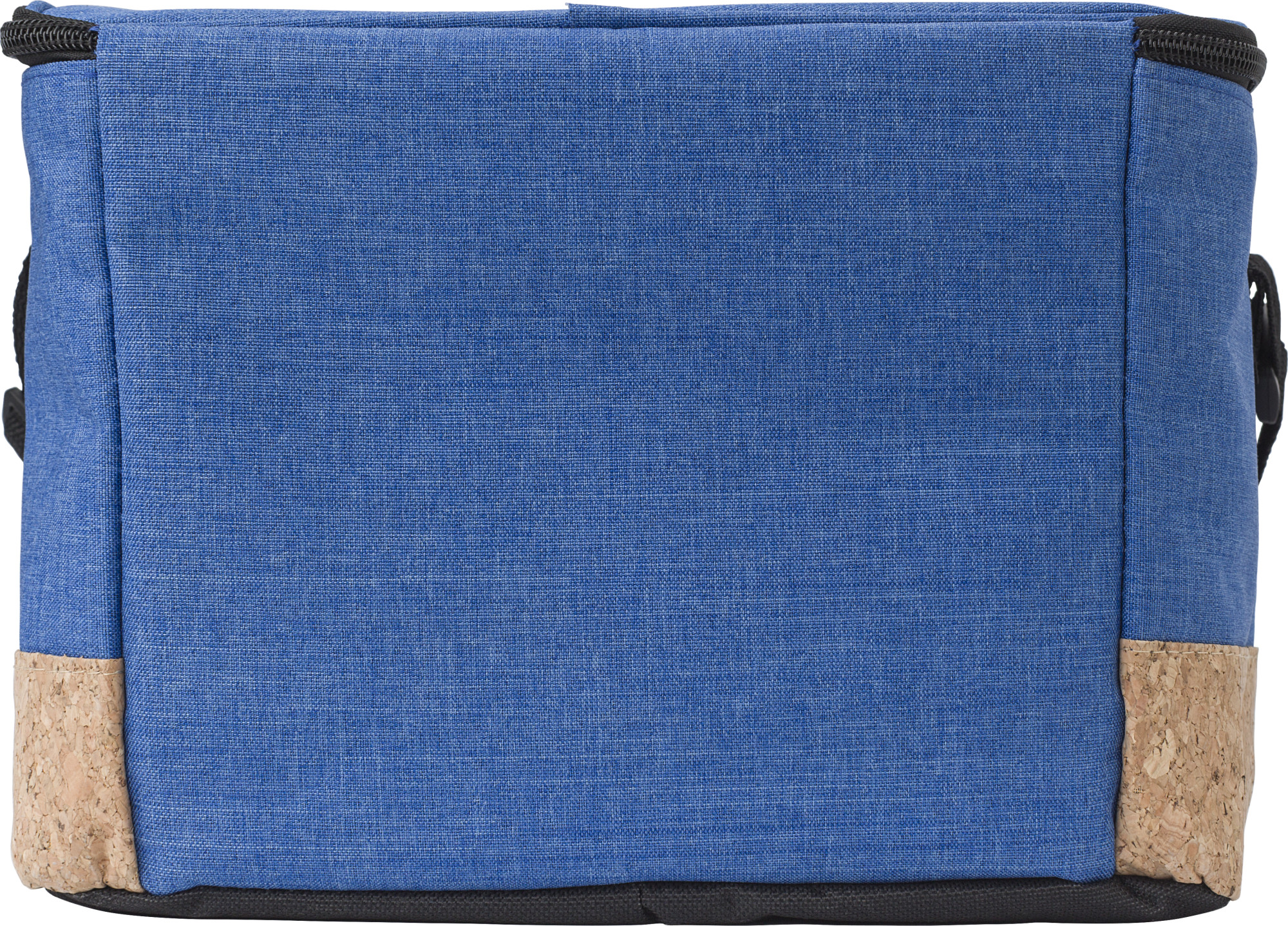 Kühltasche aus Polyester (600D) mit Reißverschluss und einem Boden aus Kork. Innenmaterial ist EVA. Die Tasche fasst sechs Dosen mit 0,5 Litern Inhalt.