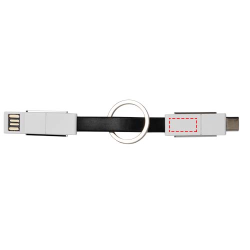 Ein 4-in-1 Kabel, das alle Ladeanforderungen in einem Paket abdeckt. Es verfügt über einen USB-Typ A, Typ C und einen 2-in-1 Tipp, der sowohl mit iOS- als auch mit Android-Geräten kompatibel ist. Es kann zum Laden und zur Datenübertragung verwendet werden. Inkl. Schlüsselbund und Magnet, bequem zu Tragen.