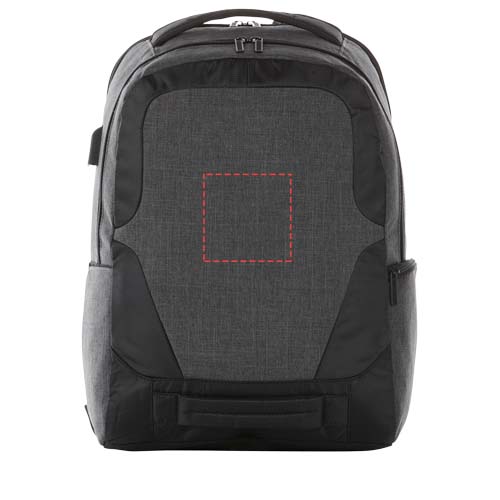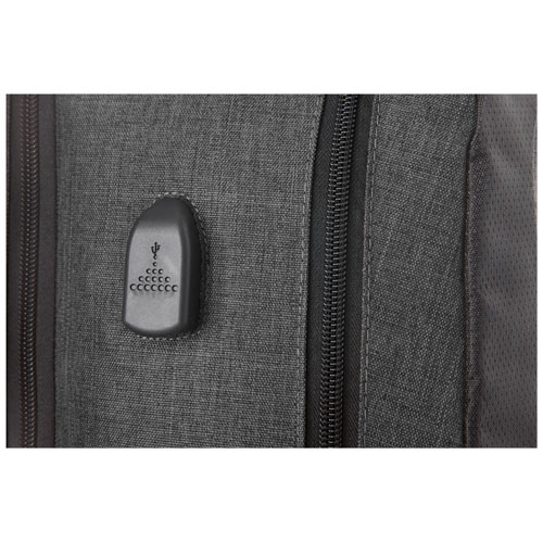 Ein schlanker 17-Zoll-Laptop-Rucksack mit USB-Anschluss und Kabel. Ausgestattet mit RFID-Schutz in der Seitentasche und zusätzlichen Taschen mit Reißverschluss. Die oberen und vorderen Haltegriffe und die gepolsterten Schultergurte erleichtern das Tragen. Es kann zu geringfügigen Farbveränderungen des eigentlichen Produkts kommen, die auf die Beschaffenheit der Gewebefarbstoffe, Gewebe und Drucke zurückzuführen sind.