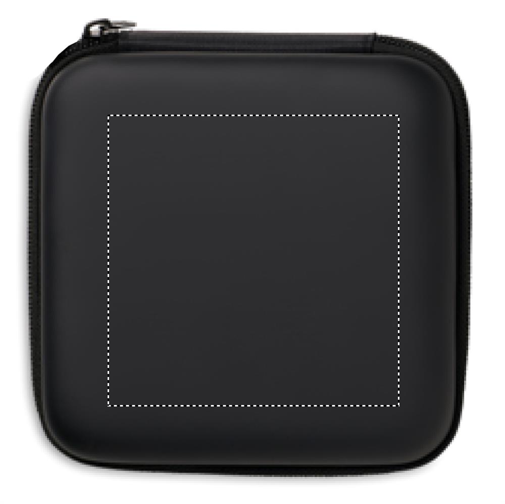 Computer-Accessoires in einer EVA/PU Tasche. Das Set beinhaltet eine kabellose Mouse, 4 Ports USB 2.0 Hub, 1 EU Adapter und eine 4000 mAh Powerbank aus recyceltem Aluminium. Mit Mikro-USB-Ladekabel.
