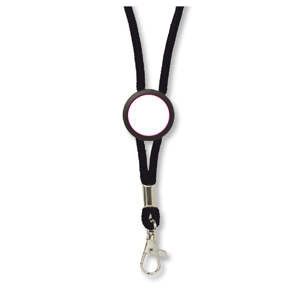 Lanyard aus Paracord mit Kunststoff Sicherheitsverschluss und Metallhaken. Das Lanyard ist verstellbar durch ein Kunststoff Plättchen, das mittels Doming veredelt werden kann.