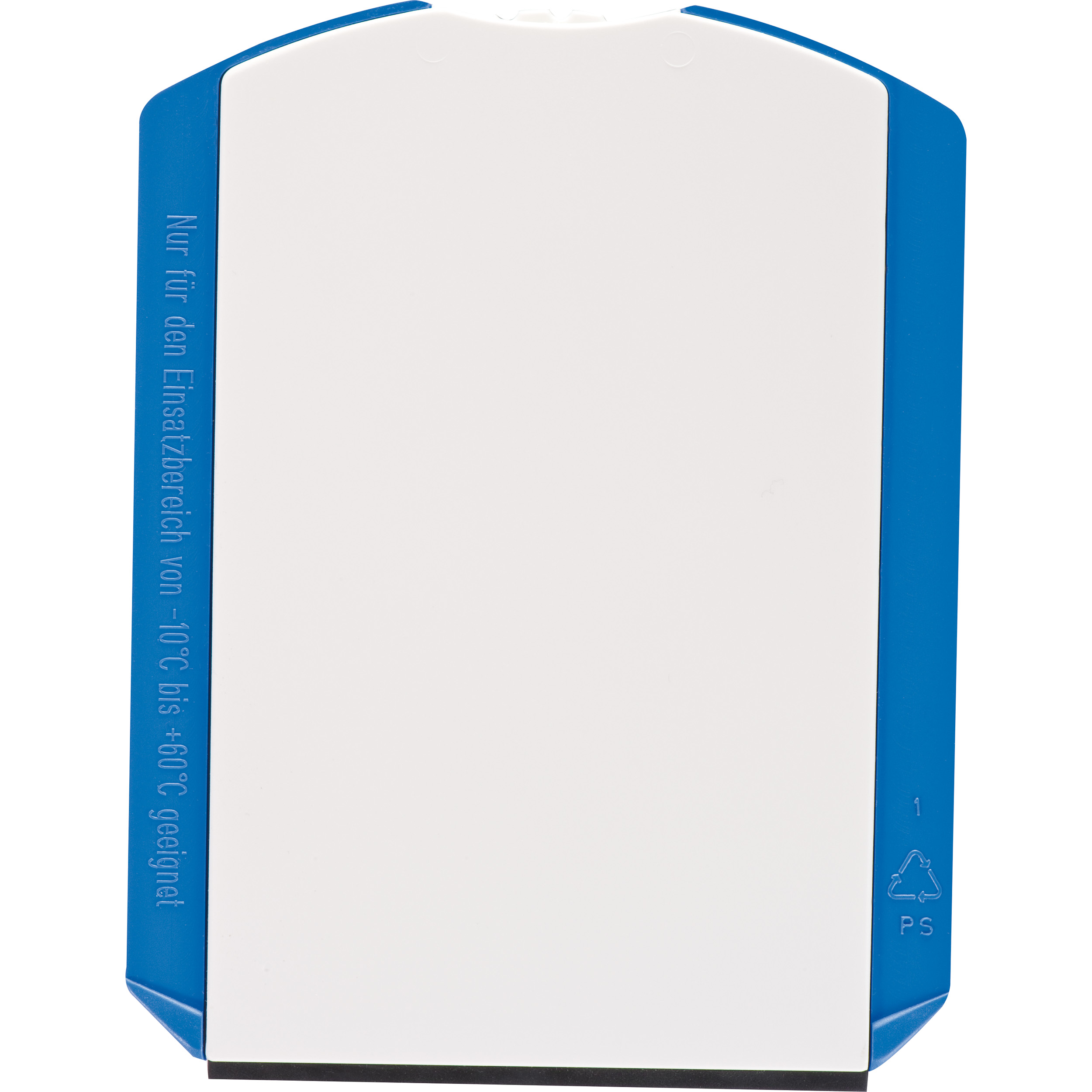 Parkscheibe mit Eiskratzer und Gummilippe. Durch diese clevere Kombination schlagen Sie gleich 2 Fliegen mit einer Klappe. Die Rückseite bietet eine hervorragende, bedruckbare Werbefläche.