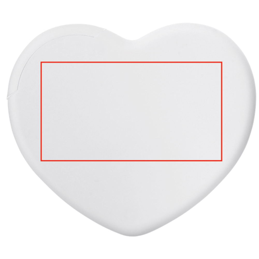 Pfefferminzdose in Herzform, erhältlich in transparent rot oder weiß. Ca. 7g zuckerfreies Pfefferminz. Die Oberfläche ist für einen vollfarbigen Digitaldruck geeignet. Die Produktspezifikationen befinden sich auf der Rückseite.