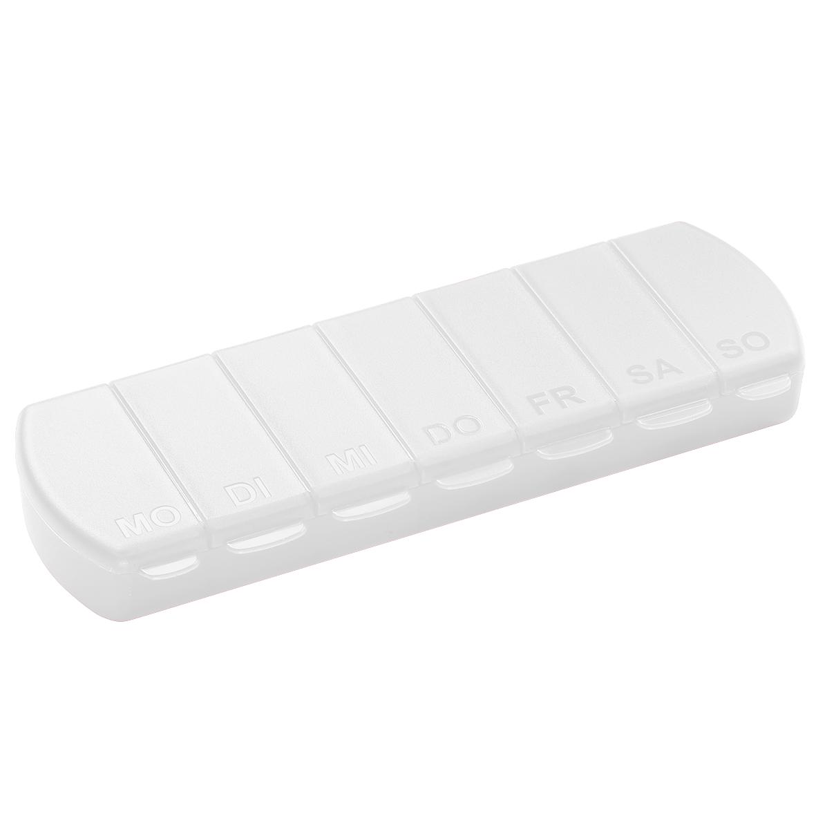 Ein Fach für jeden Tag der Woche. Leicht transparente Dose aus