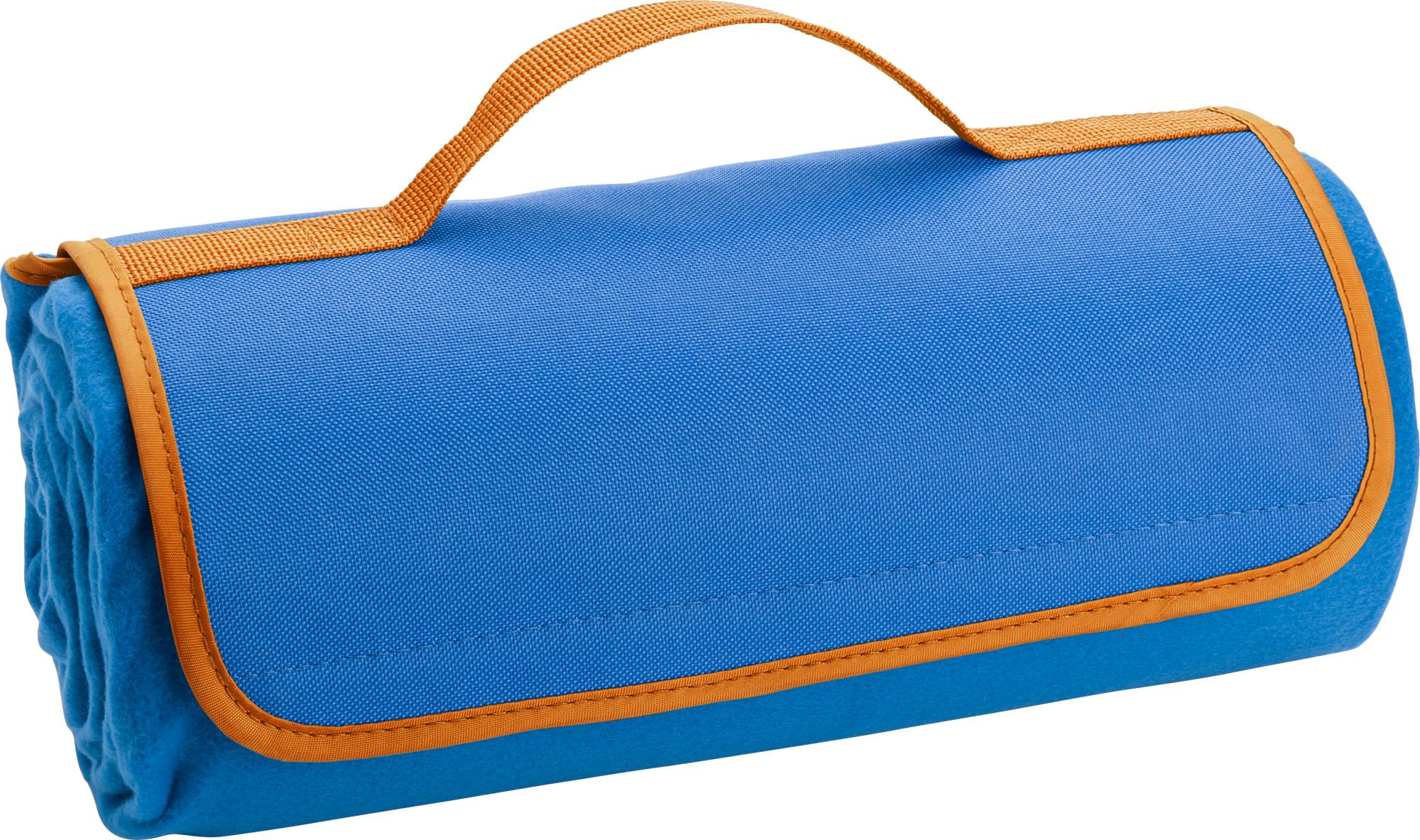 Picknickdecke aus Fleece mit wasserdichter Unterseite aus PEVA und Schaumstofffüllung. Zusammengefaltet verfügt die Decke über einen Tragegriff und eine Frontklappe mit Klettverschluss.