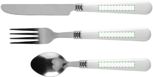 Picknickkorb für 2 Personen, Set bestehend aus jeweils 2 Gabeln, Messern, Kaffeelöffeln, Tellern und Kaffeebechern.