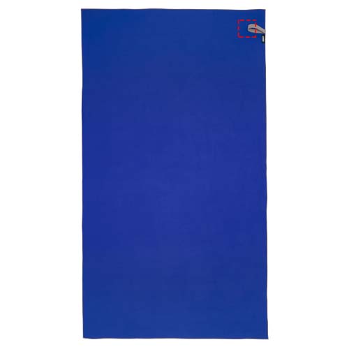 Die Pieter Sporthandtuch saugt sehr gut auf, ist leicht, trocknet schnell und der Stoff ist langlebig und extrem weich. Gefaltet und mit dem Gummiband gesichert ist das Handtuch klein und handlich, gut für Fitnessstudio, Schwimmbad oder für Rucksacktouren und Camping. Das Handtuch hat eine Größe von 180 × 100 cm und besteht zu 90% aus GRS-recyceltem Polyester und zu 10% aus Nylon. Es kann bei 40 °C in der Maschine gewaschen werden. Das Handtuch wird mit einem Aufbewahrungsbeutel (25 × 8,5 cm) aus recyceltem PET-Kunststoff geliefert, der sich hervorragend für den Aufdruck eines Logos eignet.