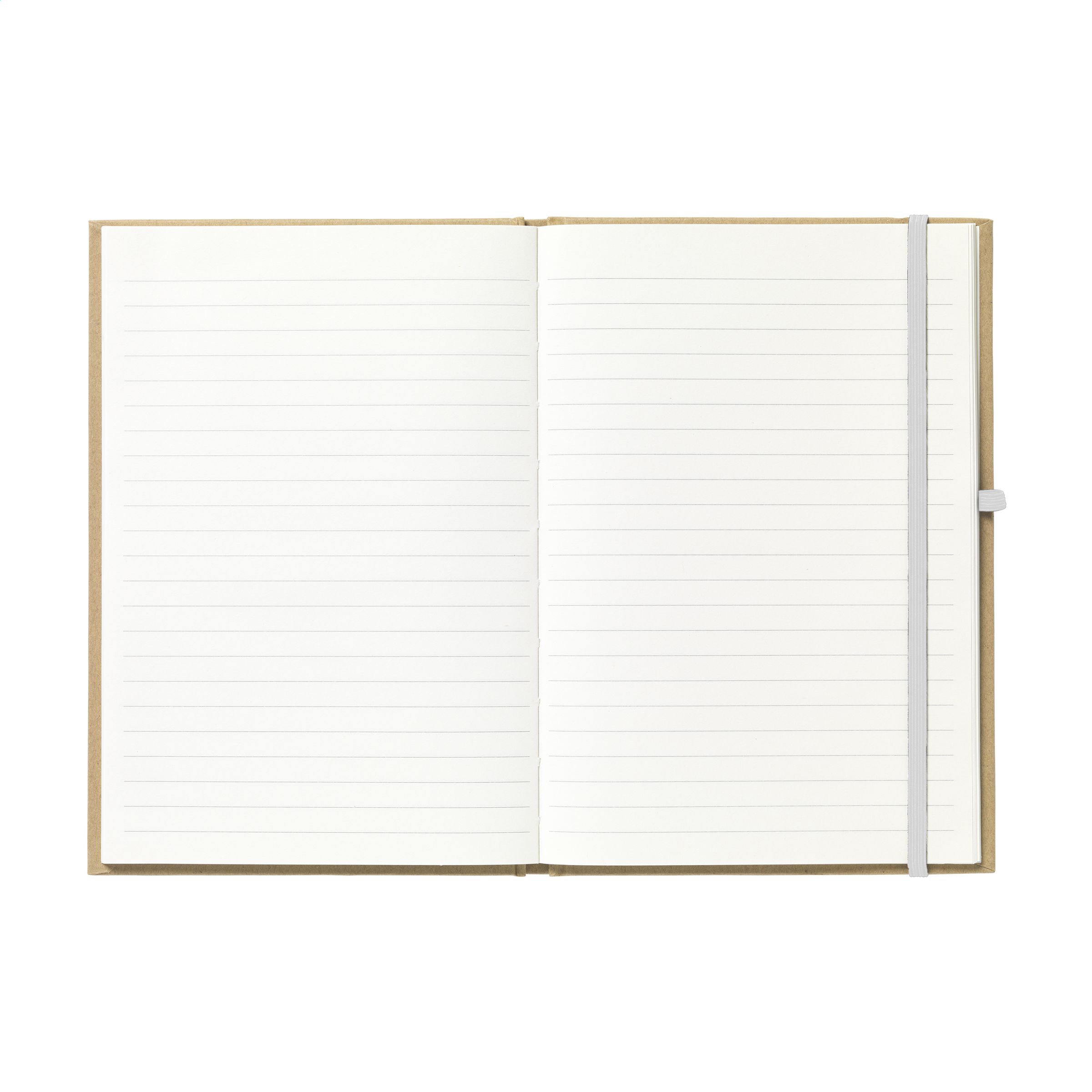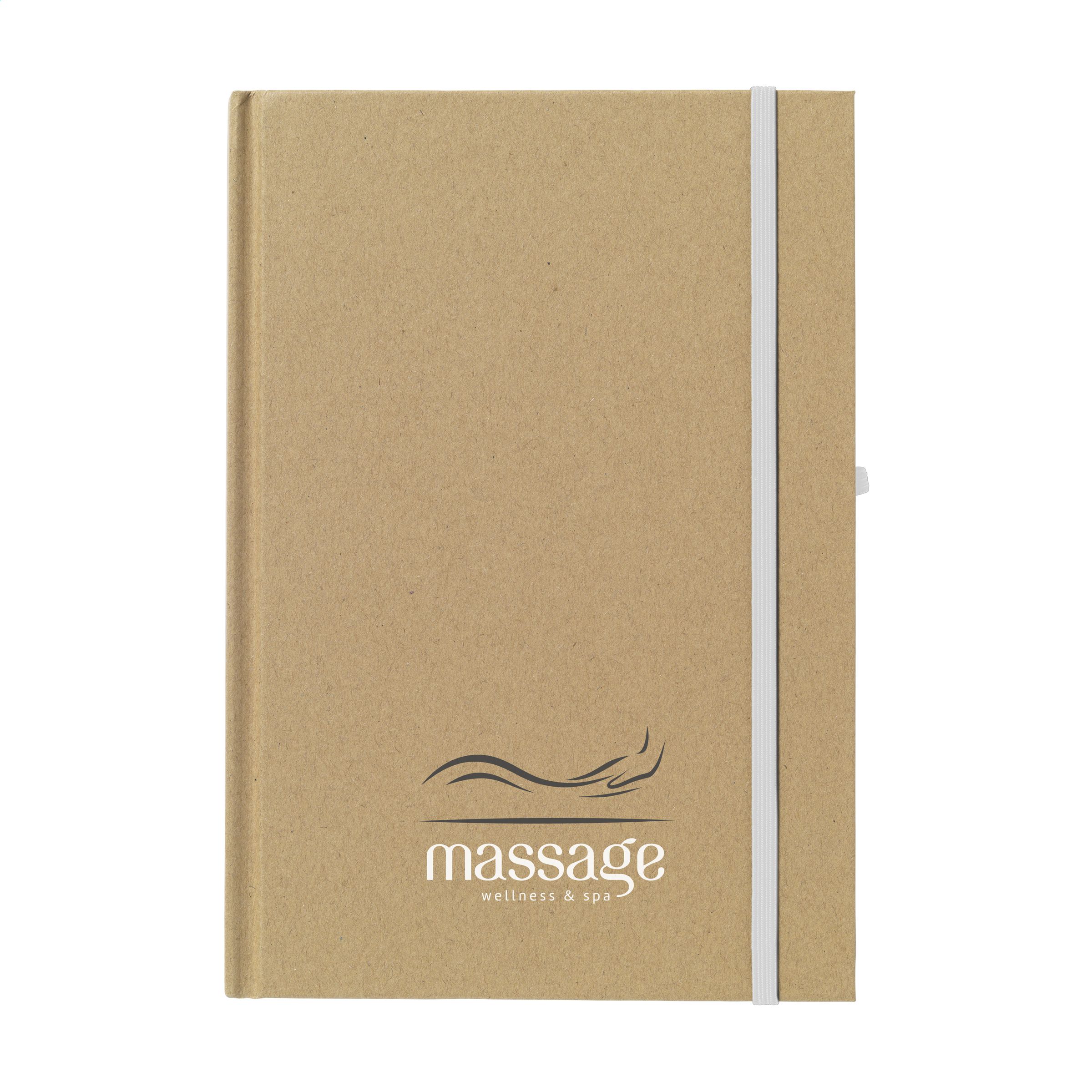 Notizbuch im A5-Format aus recyceltem Material. Mit ca. 80 Blatt/160 Seiten cremefarbenem, liniertem Papier (70 g/m²), praktischem Stiftfach und elastischem Verschluss.