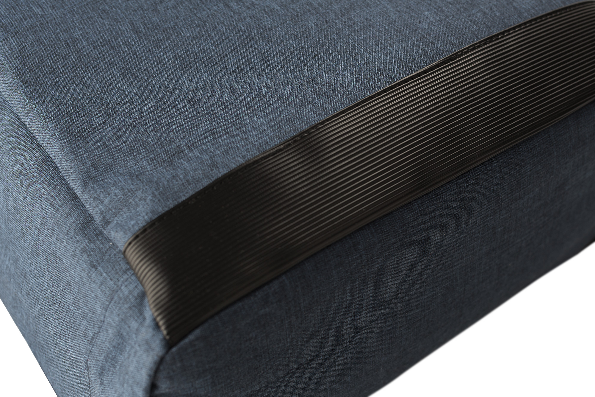 Polyester rPET (600D) Rucksack (15 Zoll) mit Anti-Diebstahl-Funktion. Kleine Tasche auf der Rückseite und Vorderseite, Fächer für Flaschen an der Seite, Trolly-Gurt, Laptop-Fach mit Klettverschluss und verstellbare Träger. Die Details auf der Unterseite sind aus recycelten Autoreifen hergestellt.