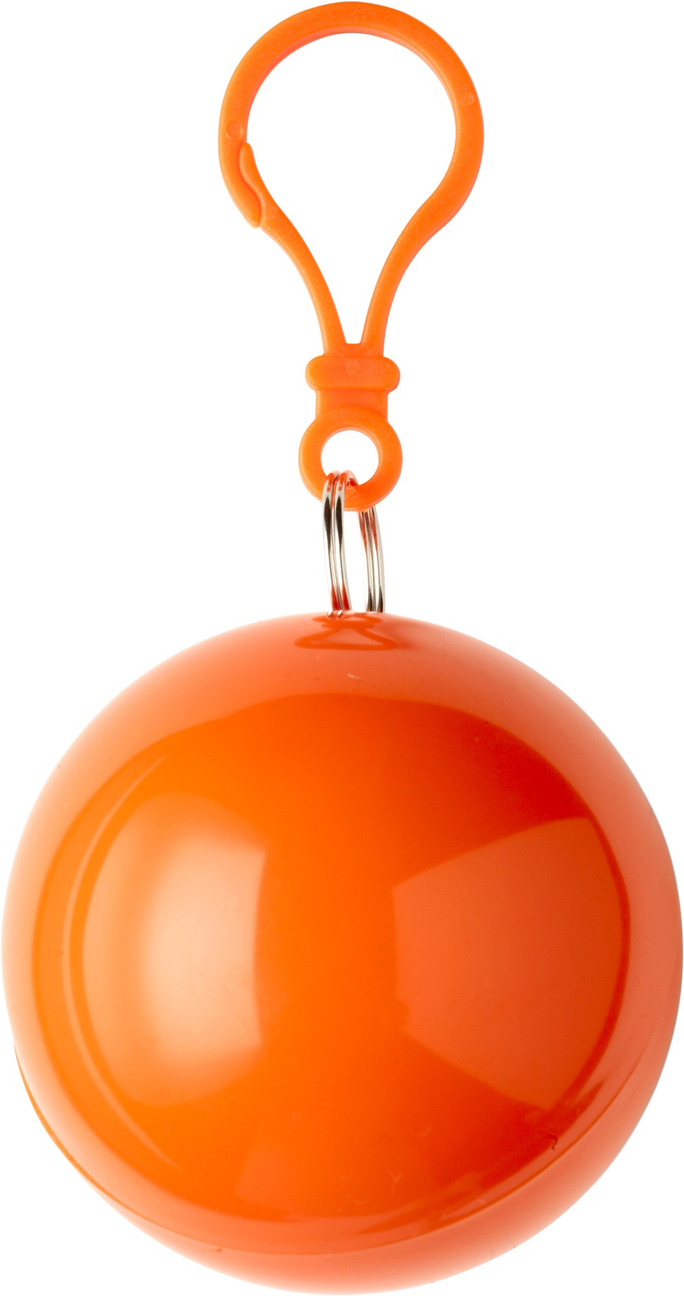 Poncho transparent, verpackt in ABS-Kunststoff-Kugel mit Kunststoff-Karabinerhaken.