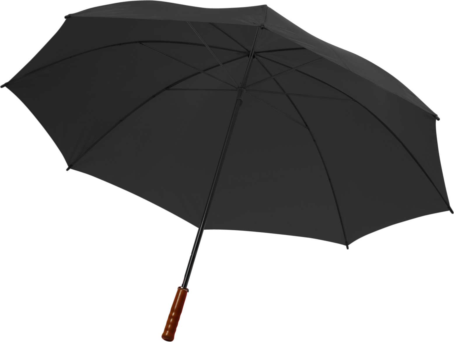 Portierschirm aus Polyester (190T), geradem Holzgriff, Schaft, Doppelspeichen und Spitze aus Metall, Tips aus Kunststoff.