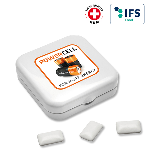 Quadro-Dose mit Kaugummi-Dragees / Preise pro Stück inkl. Werbeaufdruck 3-farbig zzgl. Nebenkosten. Allgemeine Süßigkeiten-Beschreibung: Füllung: Zuckerfreie Kaugummi, Haltbarkeit ca. 12 Monate bei sachgerechter Lagerung- Quadro-Dose mit Kaugummi-Dragees für Ihre Süße Werbung mit Geschmack.
