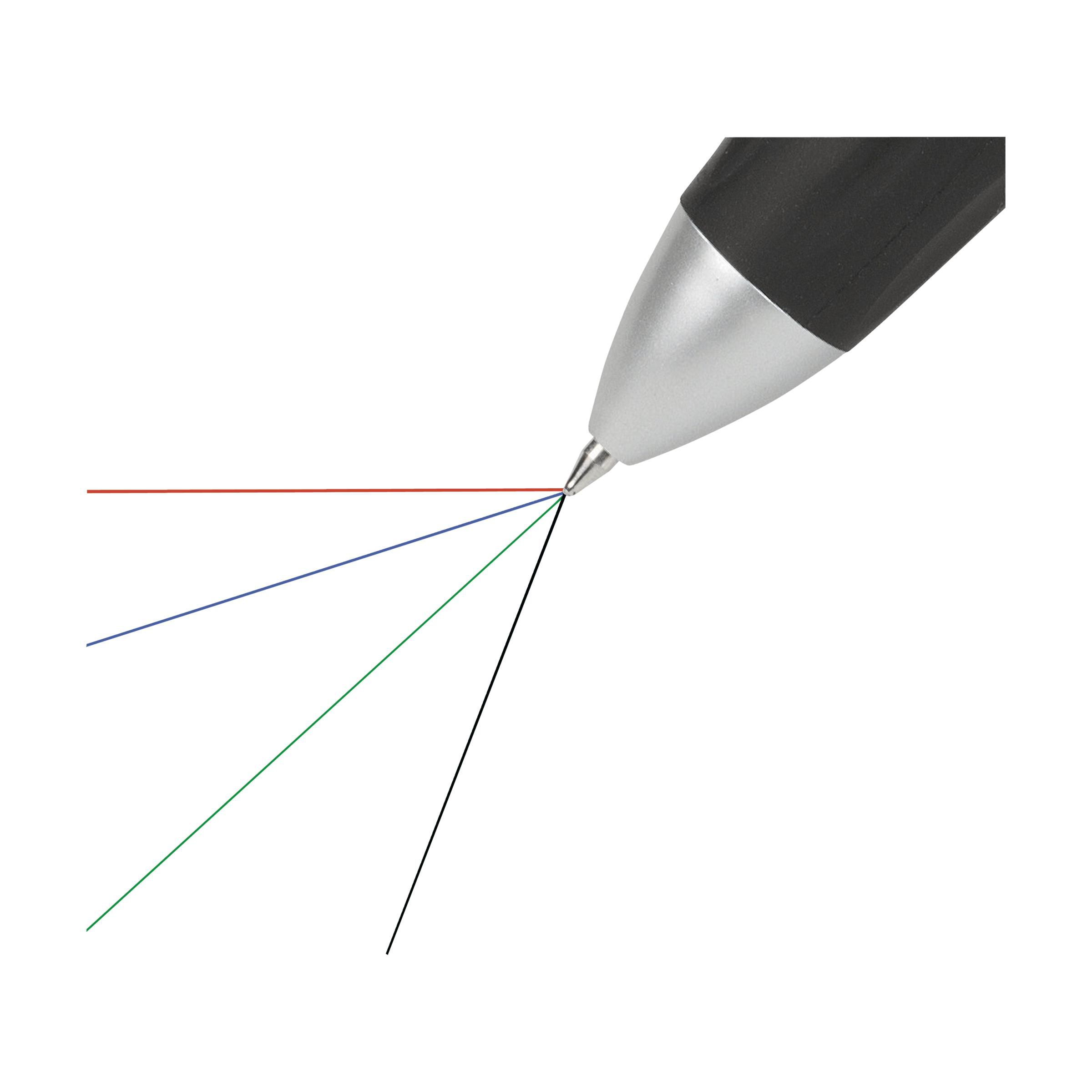 4-Farbenkugelschreiber mit grifffestem, gummierten Vorderteil. Ausgestattet mit blauer, grüner, roter und schwarzer Mine.