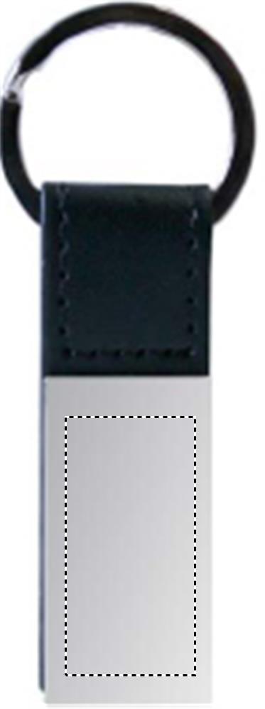 Schlüsselring mit rechteckigem Anhänger aus Zinklegierung und PU.