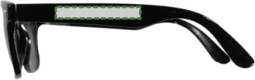 RPC-Sonnenbrille mit UV400-Schutz. RPC-Logo am Ende des Bügels. Einzeln verpackt im Papierbeutel.