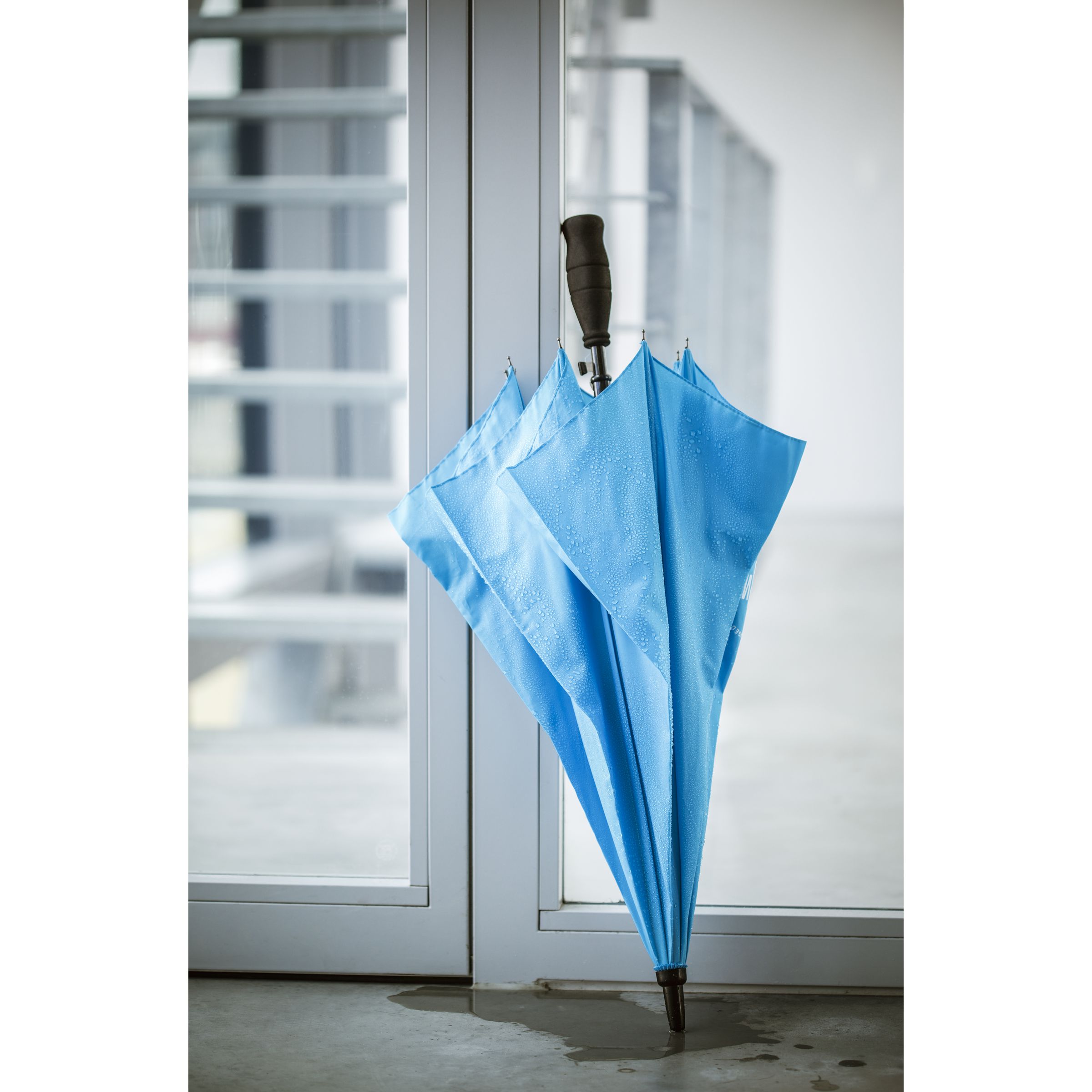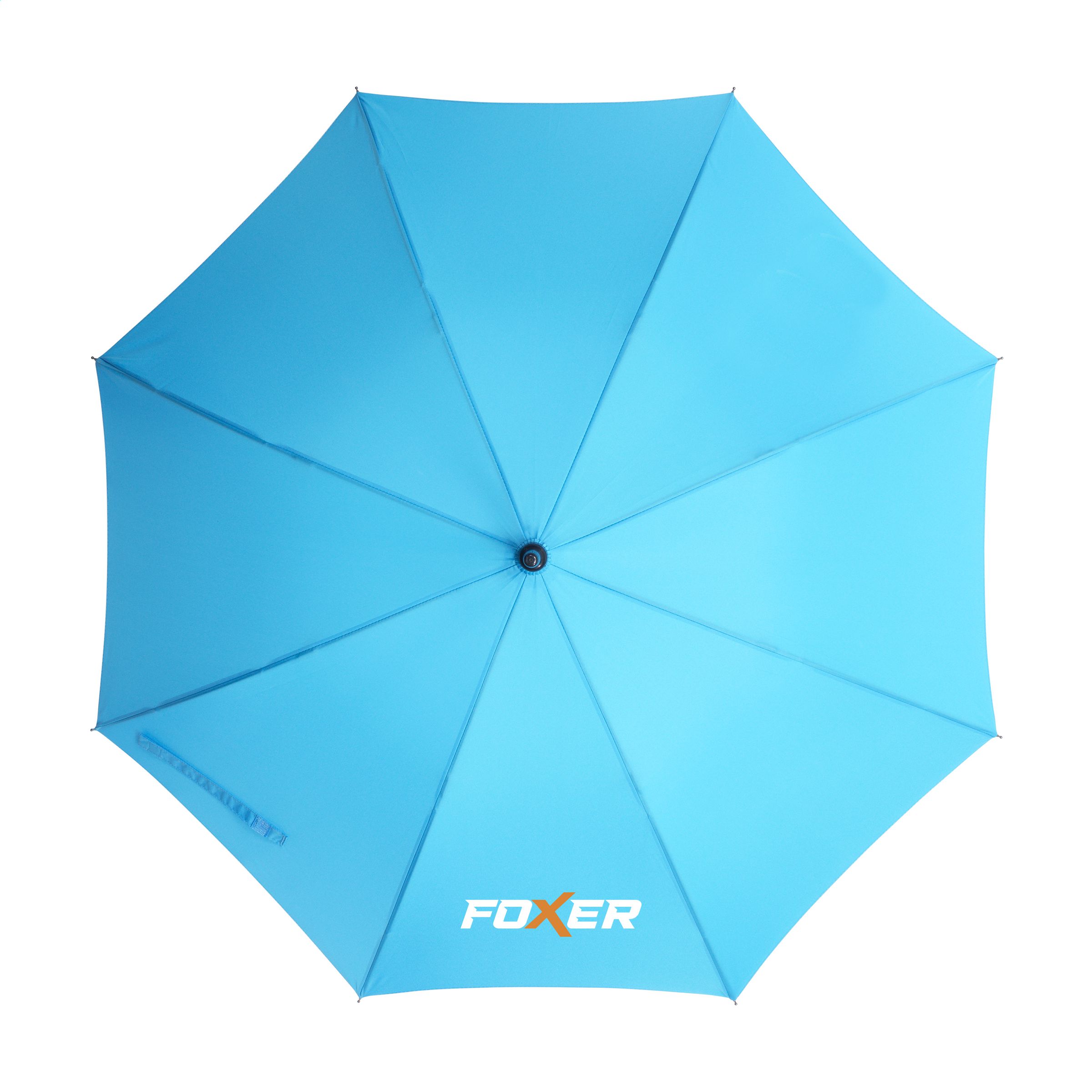 Regenschirm mit einem RPET 190T Pongee-Polyester-Bezug. Dieser Regenschirm hat einen Metallschaft und ein Gestell aus Glasfaser. Mit Griff aus Weichschaum und Klettverschluss. This sustainable umbrella is partly made from recycled PET bottles and makes a positive contribution to the environment.