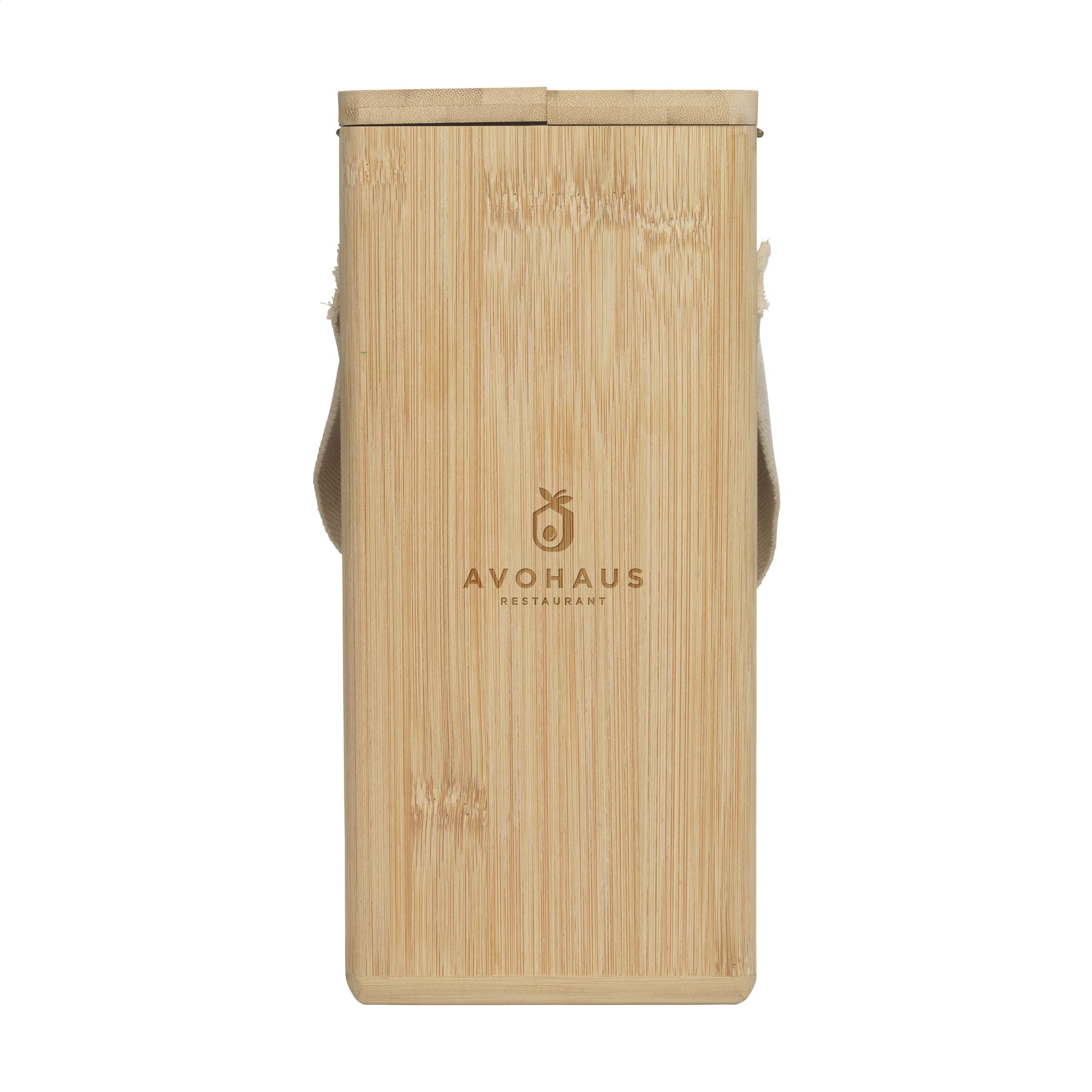Bambus ist ein natürliches Material. Deshalb kann die Farbe je nach Produkt variieren. Robuster Weinkühler von der Marke Rackpack. Dieser schön verarbeitete Weinkühler ist aus 8 cm dickem FSC 100% zertifiziertem Bambus gefertigt. Das Innere ist mit einer 4 mm dicken Isolierschicht aus Kork ausgekleidet. Diese natürlichen Materialien halten eine Weinflasche auf einer ausgezeichneten Temperatur. Mit Trageschlaufe aus Baumwolle. Ideal für ein Picknick oder einen Weinabend im Freien. Wein nicht enthalten. Wird einzeln in einem Kraftkarton geliefert.