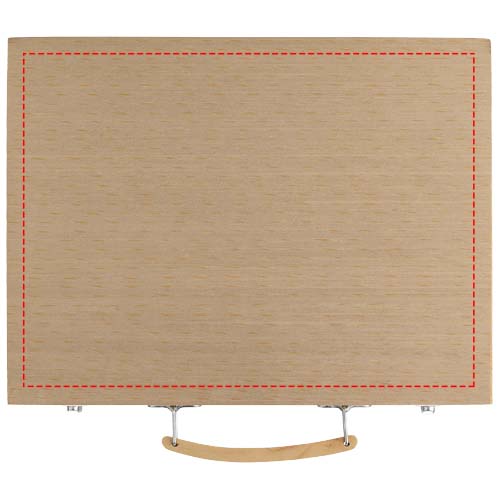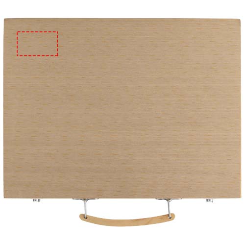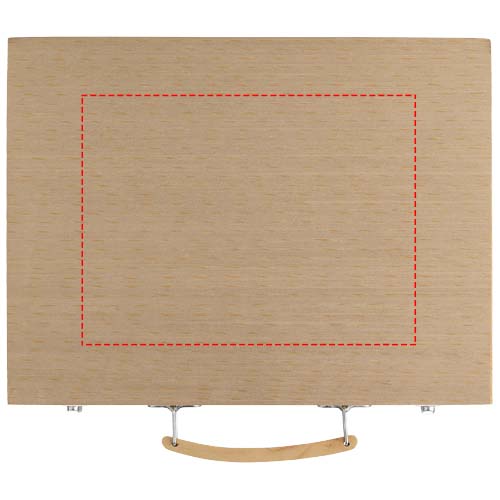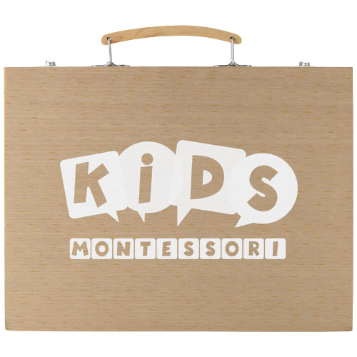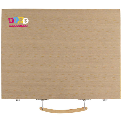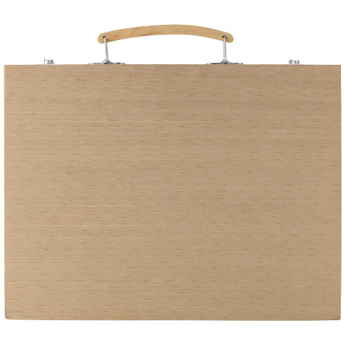 Set aus 12 Wassermalfarben, 12 Farbstiften, 12 Malstiften, 12 Öl Pastellfarben, 12 Malkreiden, Paletten, Kleber, Radierer, Spitzer, HB Bleistift und Pinsel in einem Holzkasten. Achtung! Nicht für Kinder unter drei Jahren geeignet. Achtung! Verschluckbare Kleinteile, Erstickungsgefahr. Funktionelle scharfe Kante. Nicht zum Verzehr geeignet. Nur unter Aufsicht von Erwachsenen verwenden.