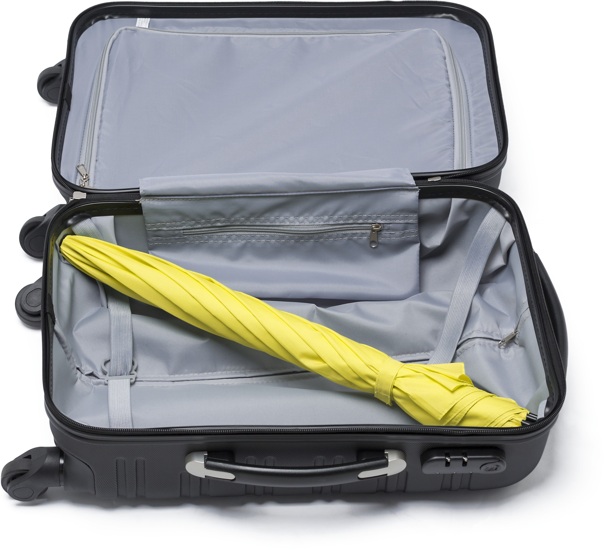 Der Regenschirm hat eine Bespannung aus Pongee (190T) und besitzt einen Handgriff aus Kunststoff und ein Gestell aus Fiberglas. Der Regenschirm ist besonders leicht und kurz und eignet sich besonders zum Reisen.