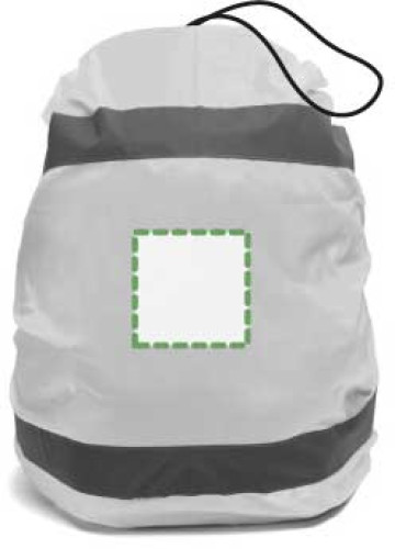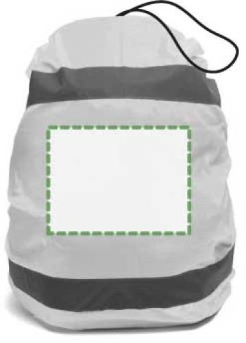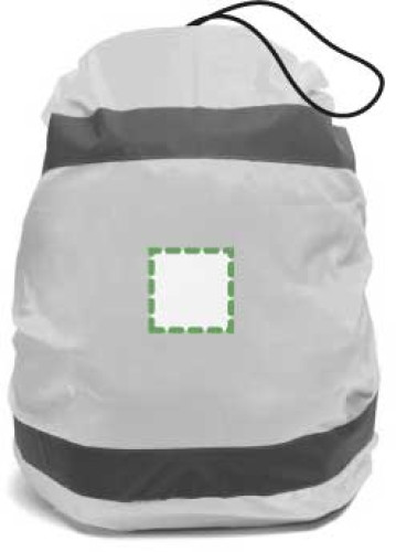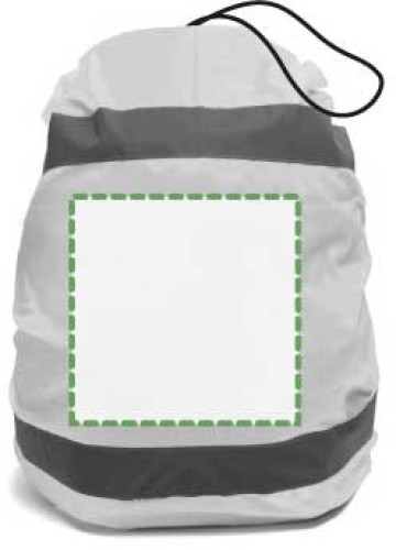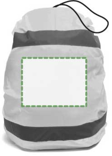 Regenschutz für Rucksäcke mit Reflektorstreifen und Zugband.