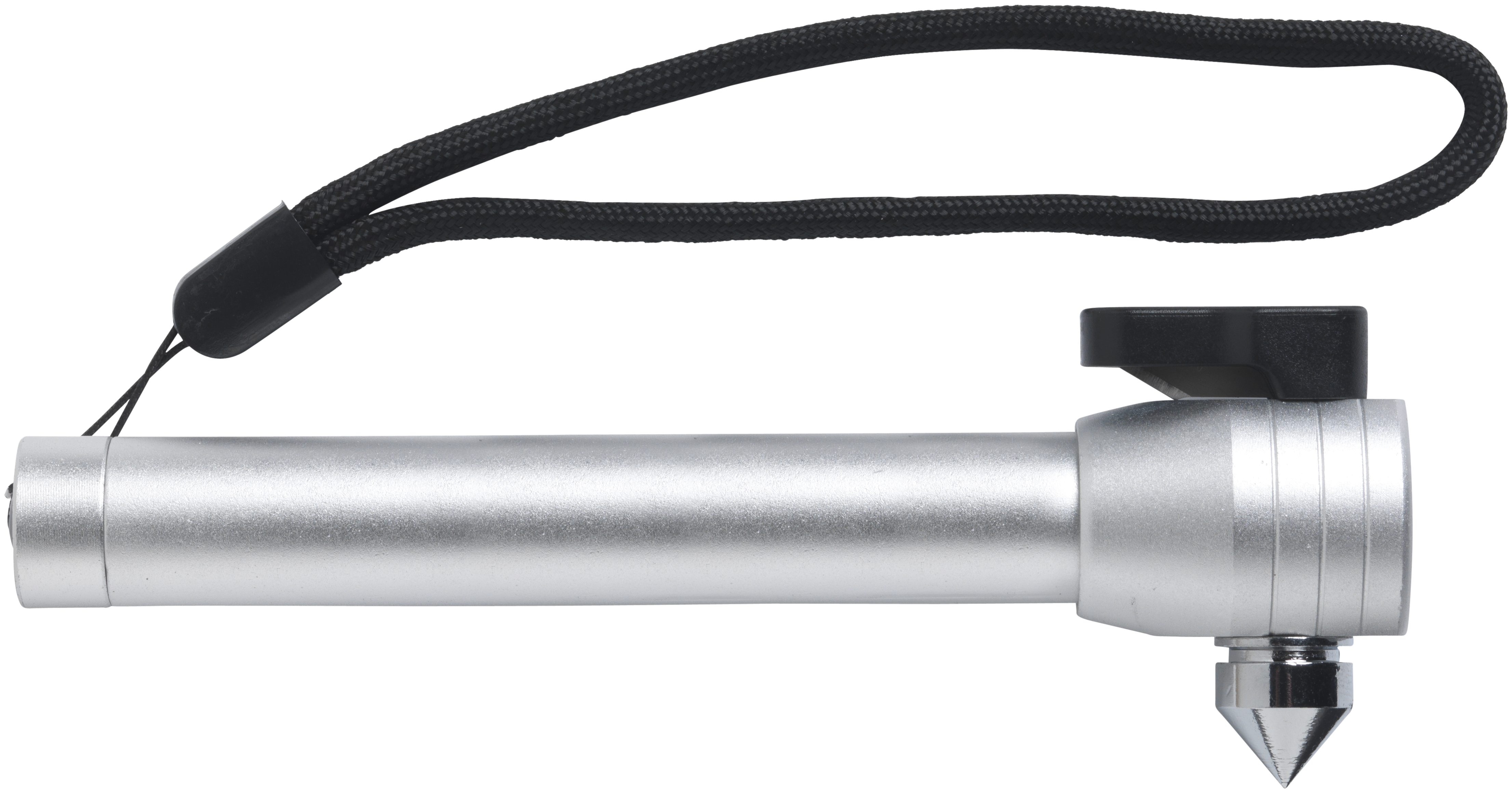 4-in-1 Aluminium-Autowerkzeug mit Sicherheitshammer, Gurtschneider, Magnet und Taschenlampe mit COB-Licht. Ein Notwerkzeug, das in jedem Auto in Reichweite sein muss. Inklusive abnehmbarer Schlaufe und Batterien.