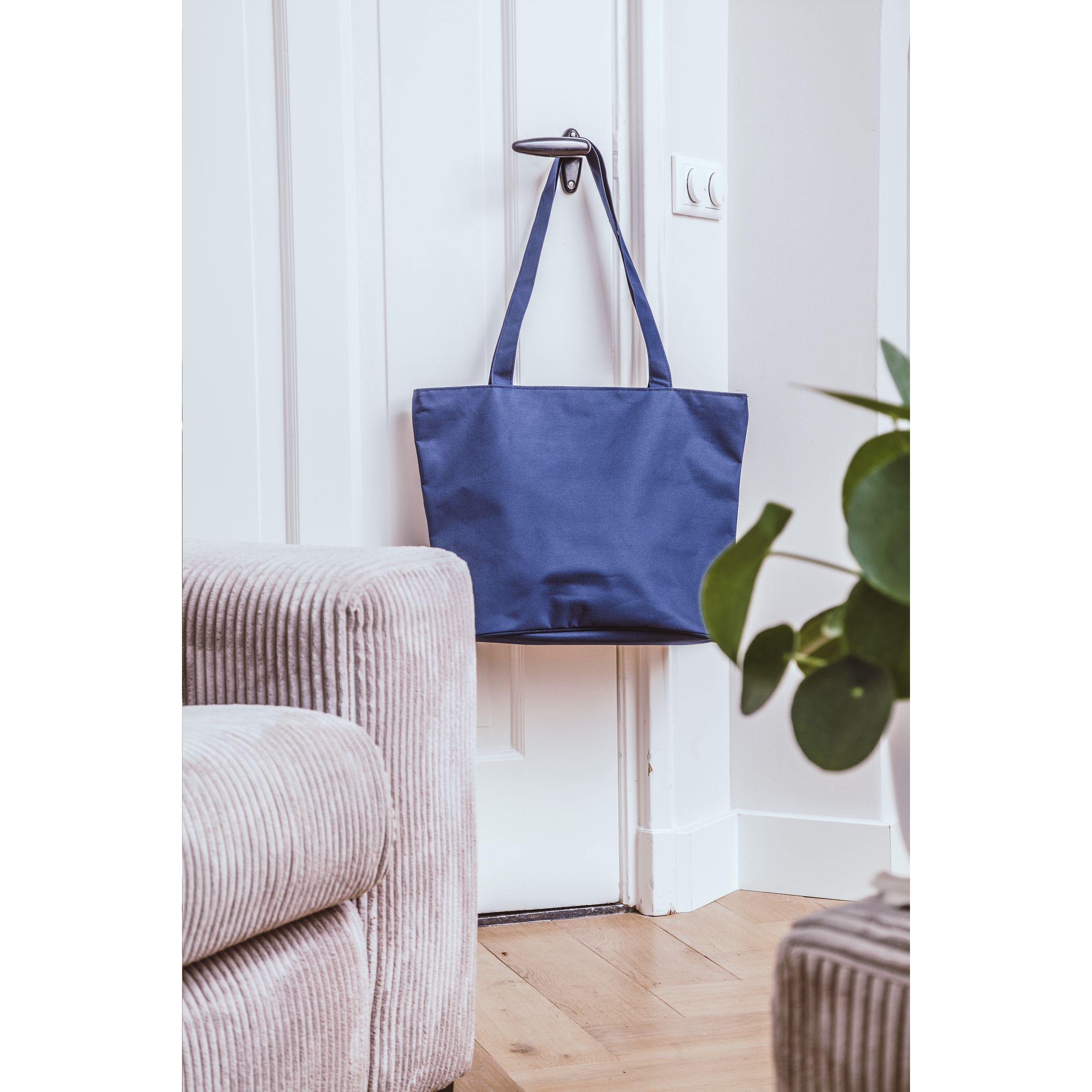 Schöne, robuste Tasche aus 600D-Polyester mit verstärkter Innenseite, langen Henkeln, Reißverschluss und Aufbewahrungsfach mit Reißverschluss. Der breite Boden ist außen schön und stramm mit einem runden Zierstreifen veredelt. Multifunktional einsetzbar als Shopper, Einkaufstasche und Strandtasche.