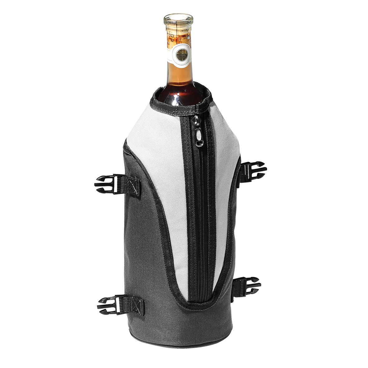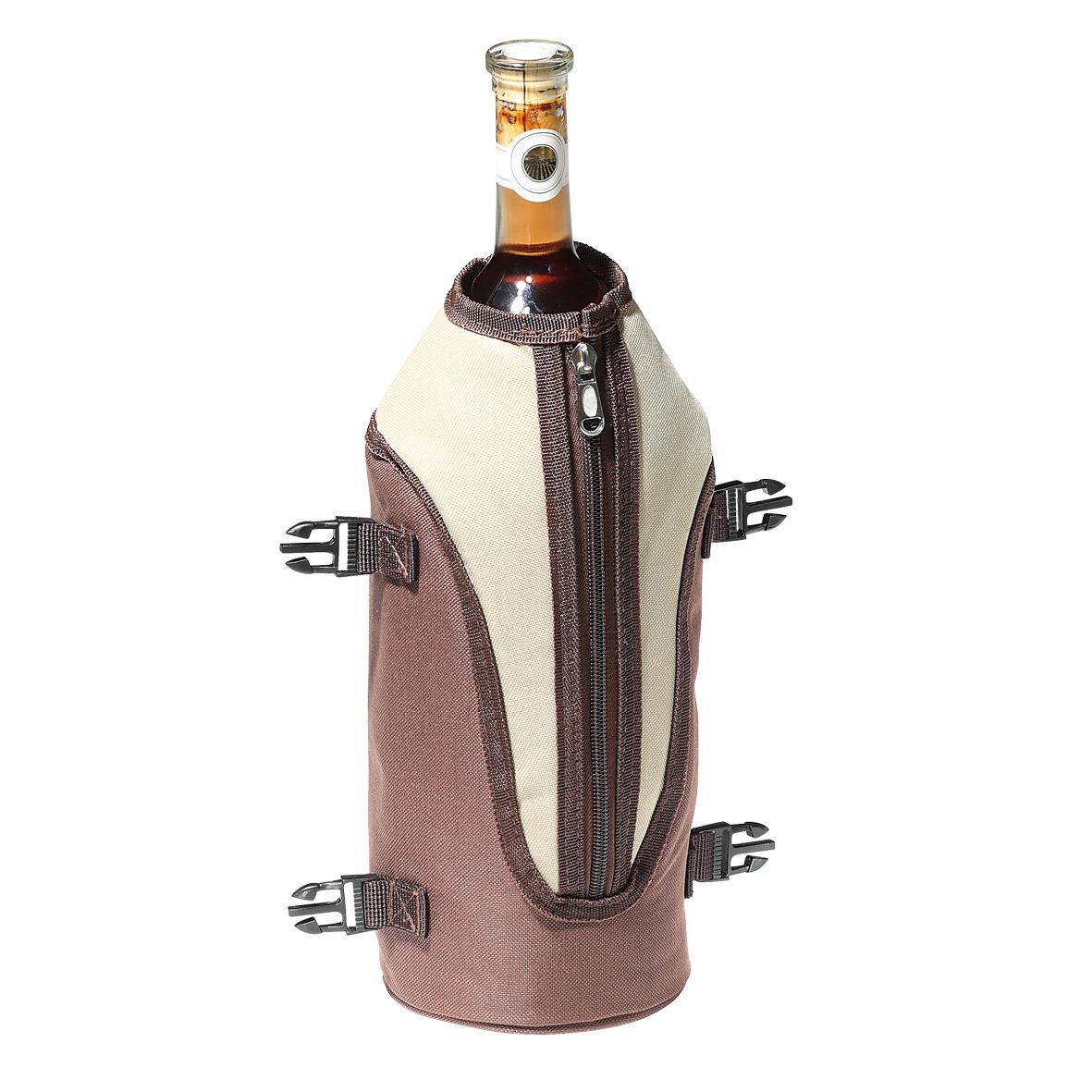 Für 4 Personen. Gabeln, Messer und Löffel aus Edelstahl mit Kunststoffgriff, Teller, Weingläser aus Kunststoff, Stoffservietten, 1 Salz-/Pfefferstreuer, 1 Flaschenöffner, 1 Käsemesser, 1 Schneidbrett aus Holz und eine abnehmbare Weintasche mit Kühlfunktion. Mit grauer PEVA Folie isoliert.