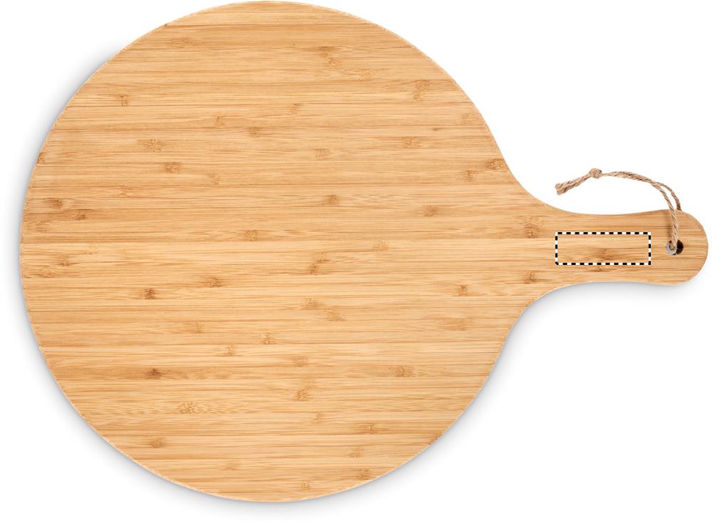 Schneidebrett aus Bambusholz mit praktischem Serviergriff. Ø31 cm. Mit Jute-Schnur. Bambus ist ein natürliches Produkt, es kann daher zu leichten Abweichungen in Farbe, Dekor und Maßen kommen.