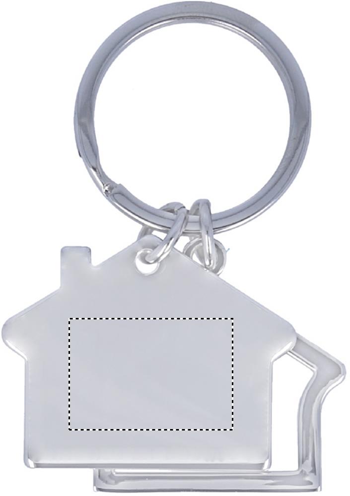 Schlüsselring aus Metall mit Anhängern in Form eines Hauses.