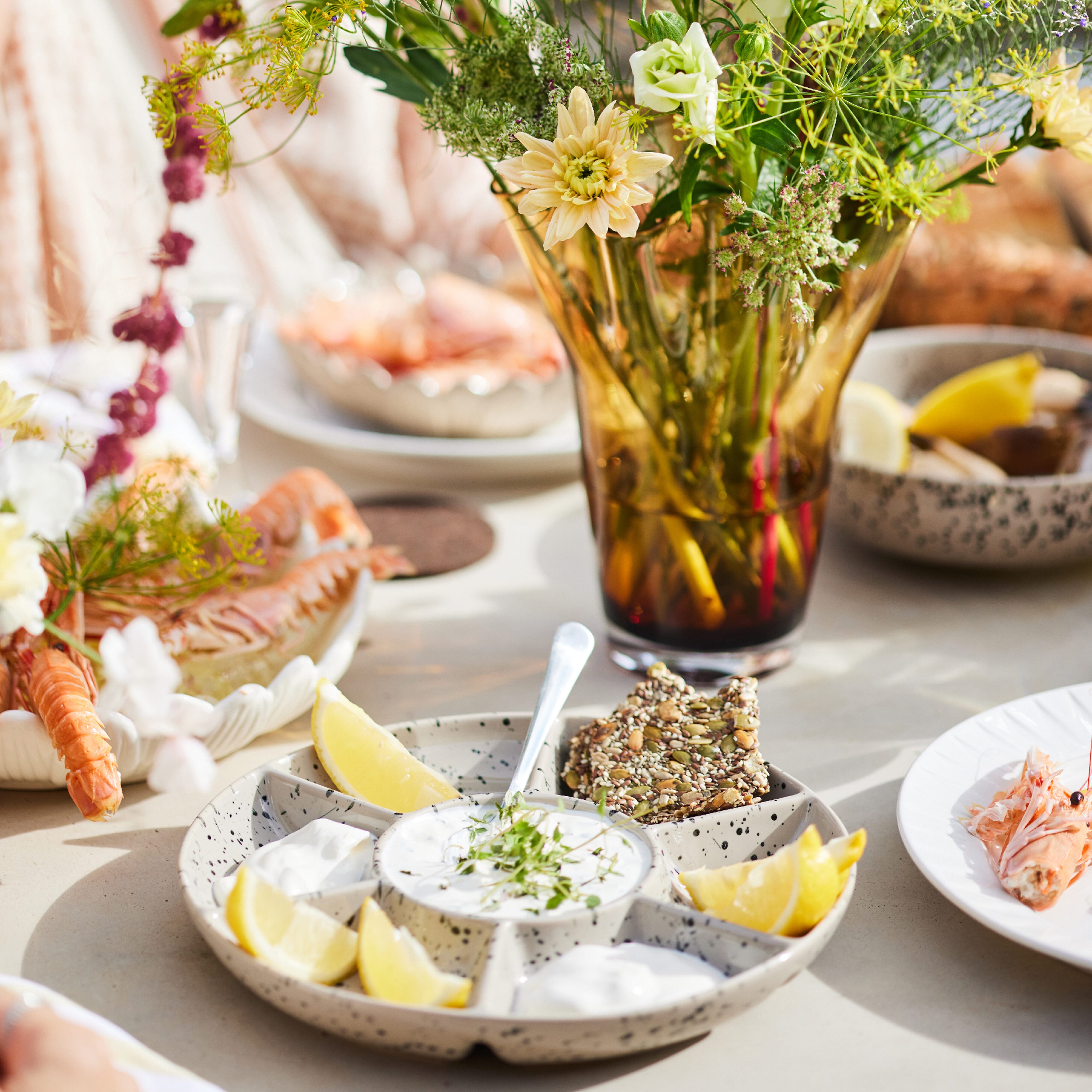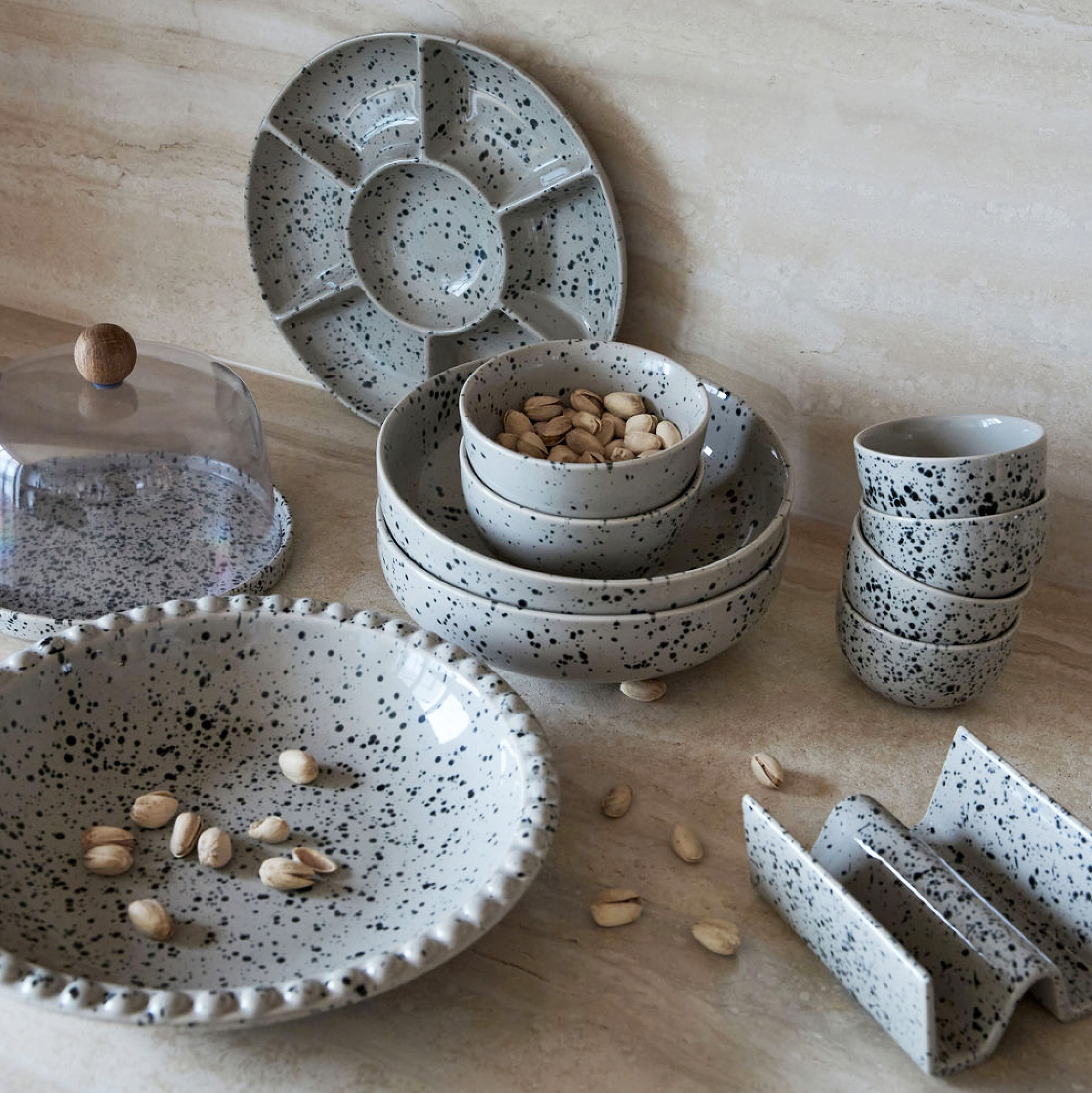 Ein Teller, viele Verwendungsmöglichkeiten. Tapas, Tacos, Fingerfood - auf dieser Servierplatte ist für alles Platz. Statt mehrerer Schüsseln ist diese Servierplatte praktisch und stilvoll. Außerdem schaffen Sie so mehr Platz auf dem Tisch und müssen weniger abwaschen. Die Teller sind stapelbar. Die Servierplatte Ditte ist aus Steingut in Beige-/Grautönen mit einem schönen schwarzen Spritzmuster hergestellt. Ditte ist handgefertigt. Die Farbe und die Oberfläche können daher von Produkt zu Produkt variieren. Jedes Produkt ist in seinem Aussehen einzigartig.