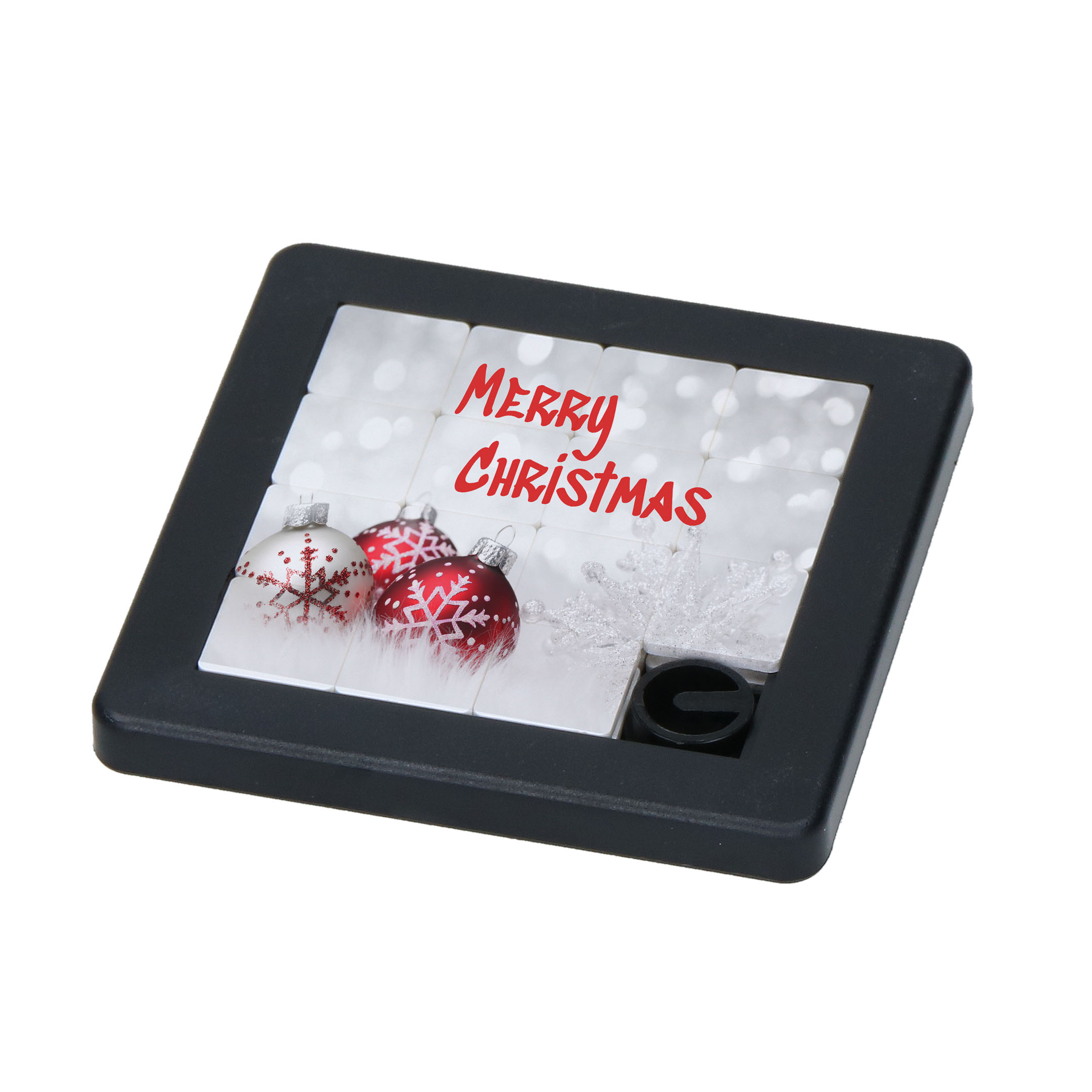 Kniffliges Schiebespiel mit 15 beweglichen Teilen und 1 Stopper. Individuell mit bis zu 4 Farben bedruckbar. Große und wirkungsvolle Werbefläche.