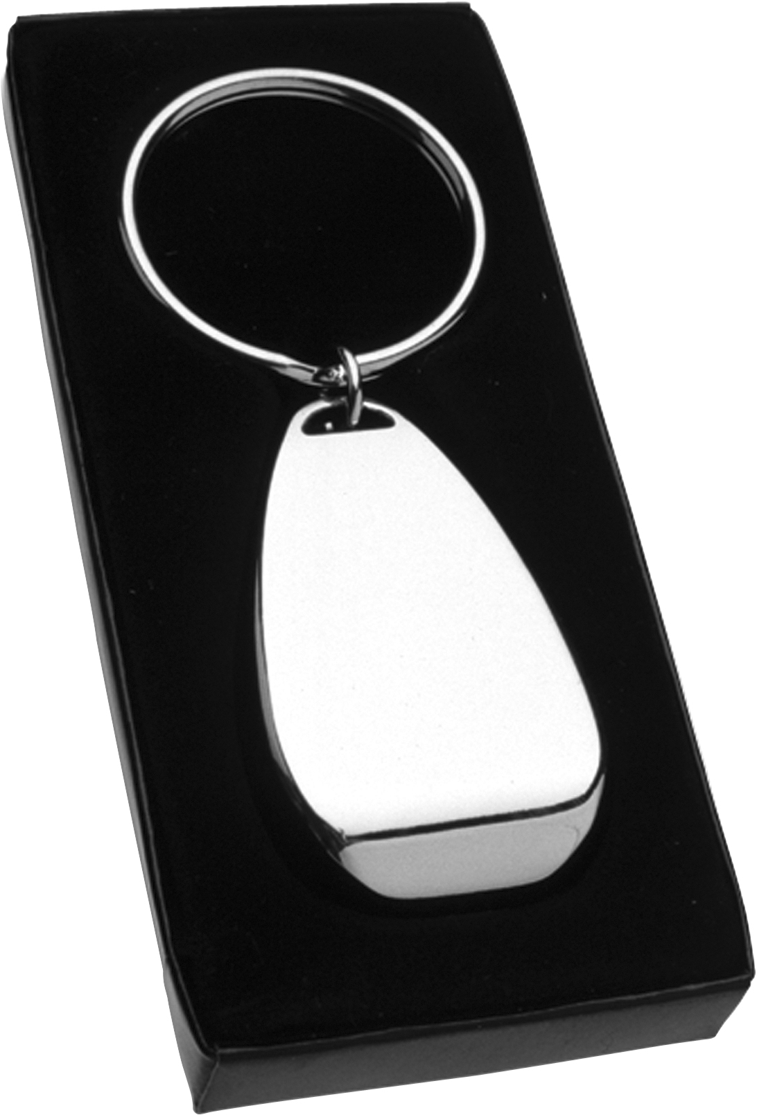 Schlüsselanhänger aus Metall, mit Flaschenöffner und Metall-Schlüsselring, in schwarzer Geschenkbox.