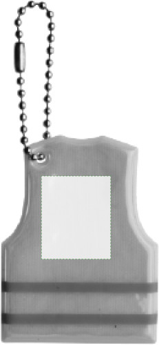 Schlüsselanhänger aus PVC in Warnwestenform, mit Reflektorstreifen und Schlüsselkette.