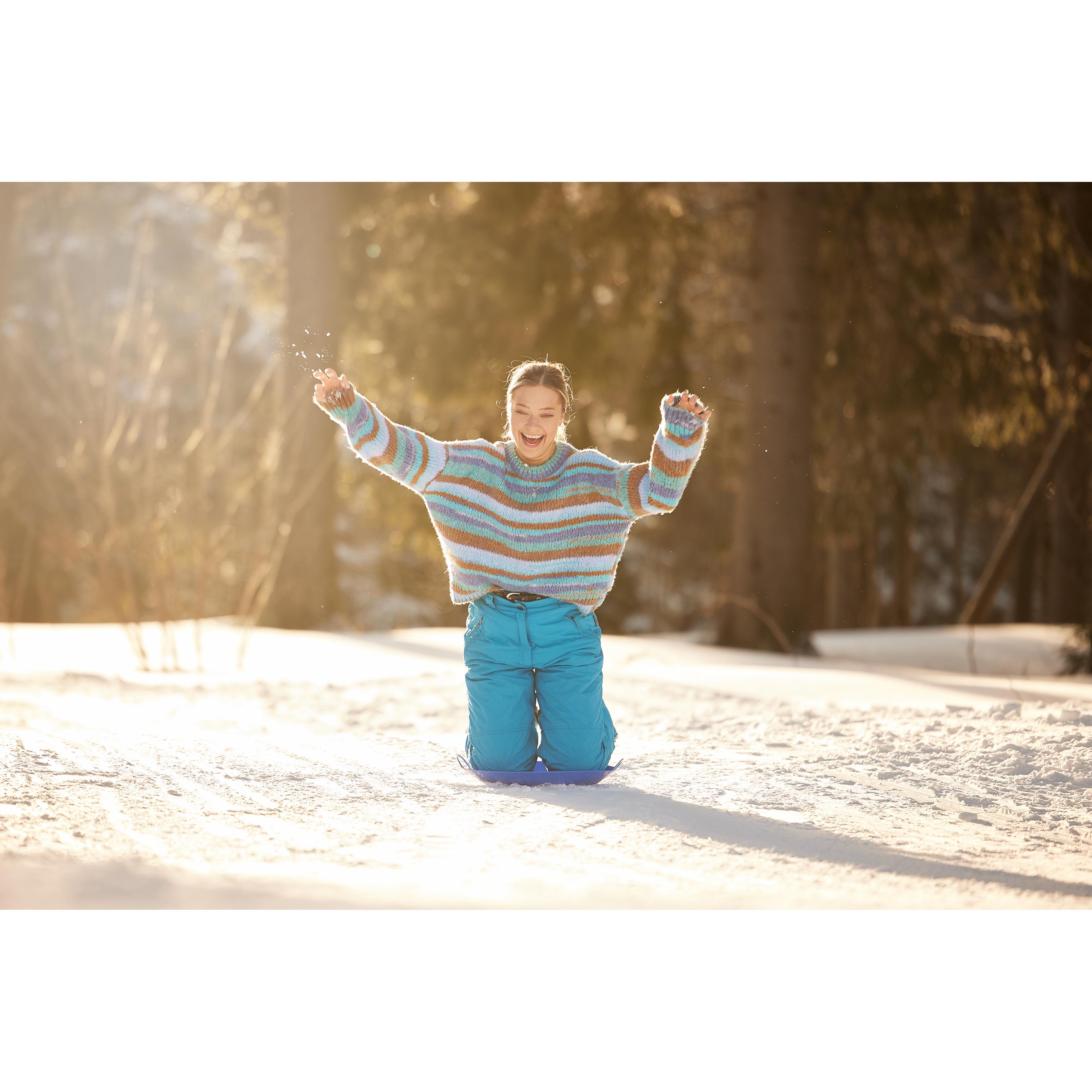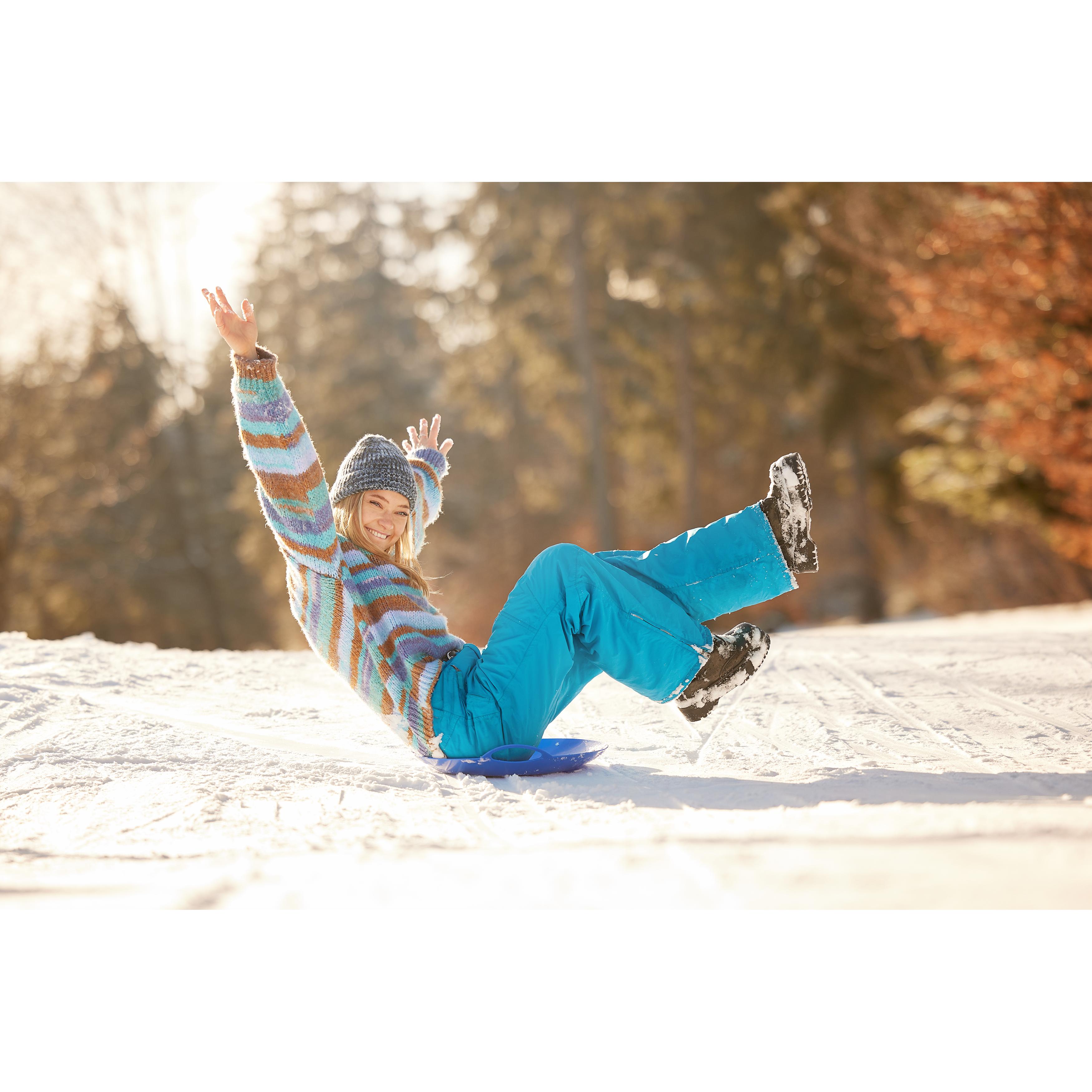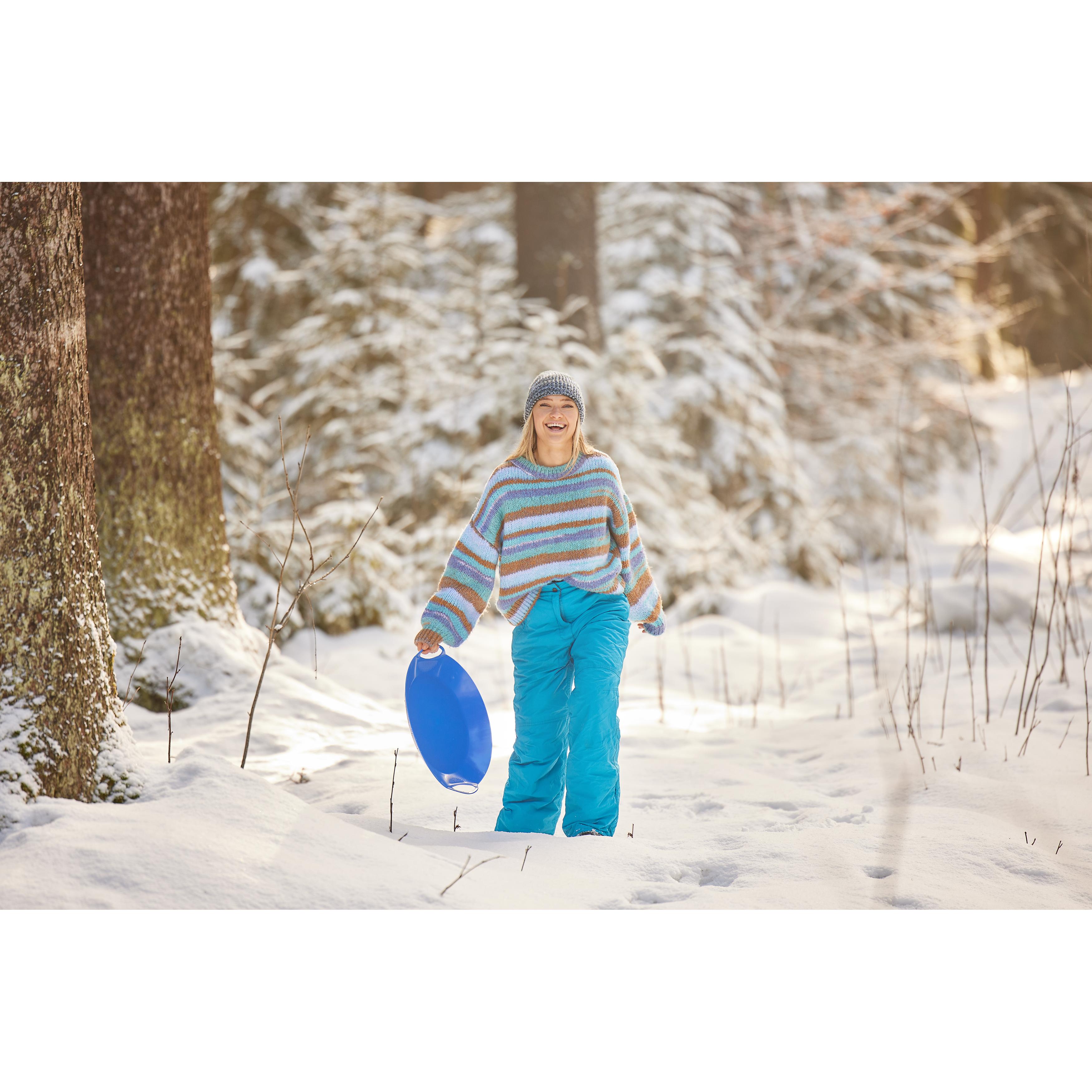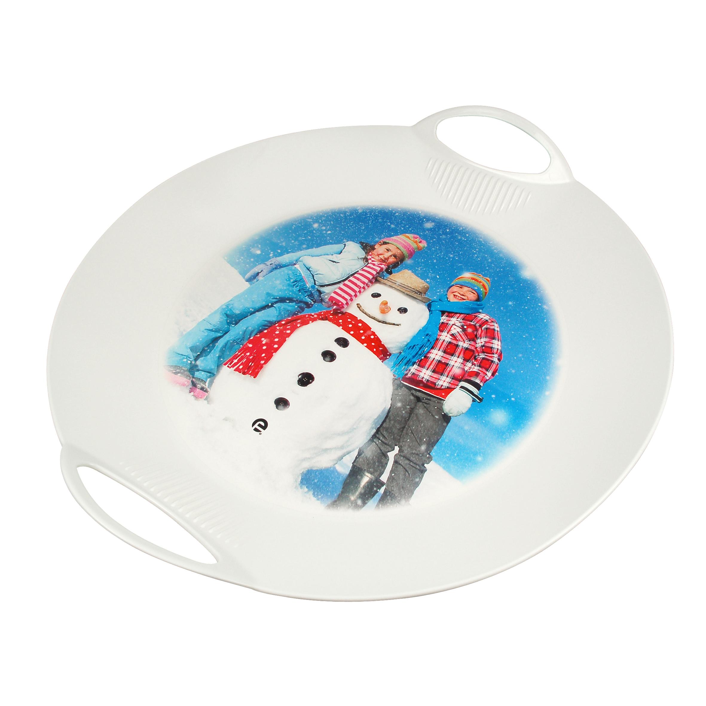 Rodelspaß für Jedermann. Runder Schneeflitzy aus stabilem Kunststoff mit 2 praktischen Griffen und erhöhtem Rand. Die Sitzfläche ist mit IMould veredelbar.