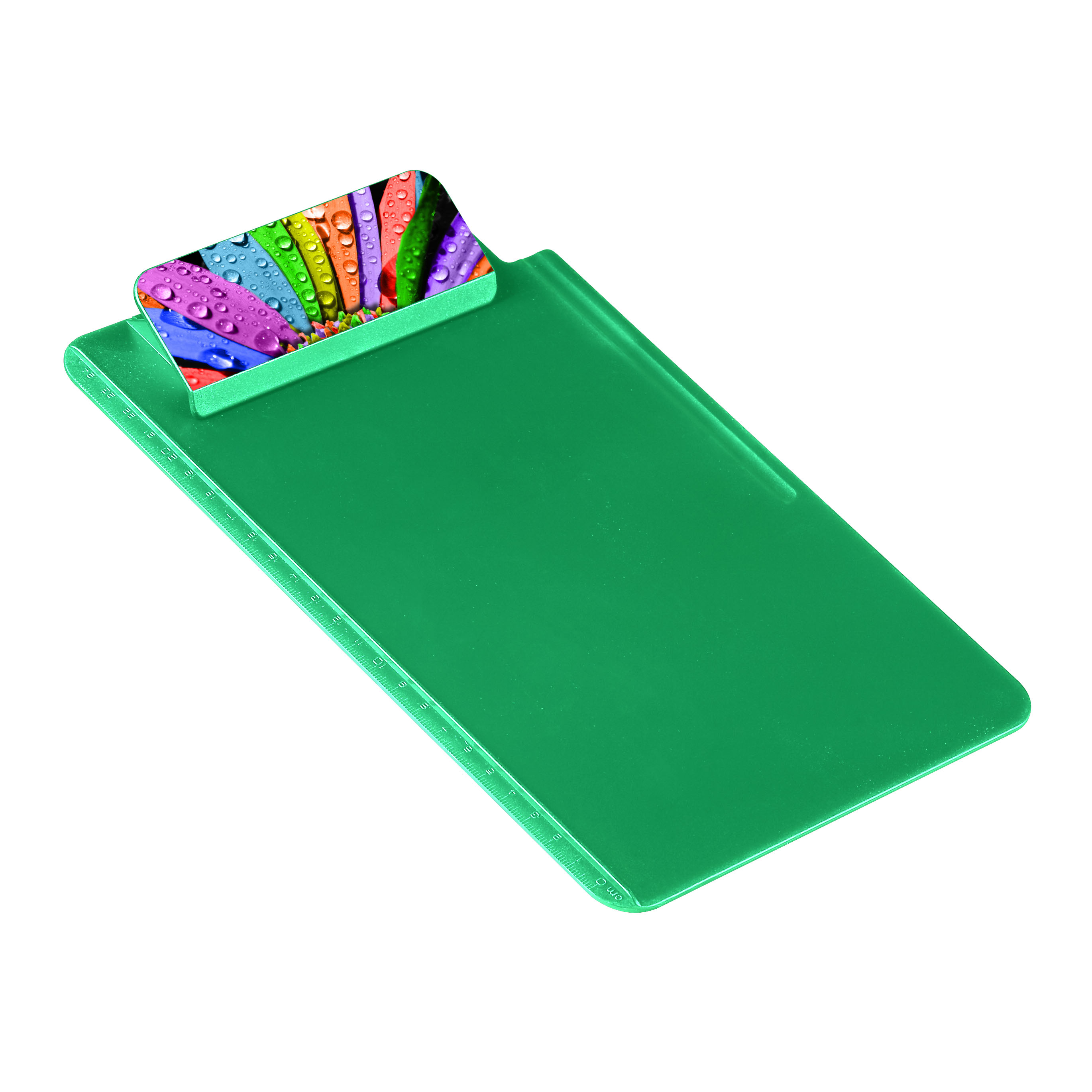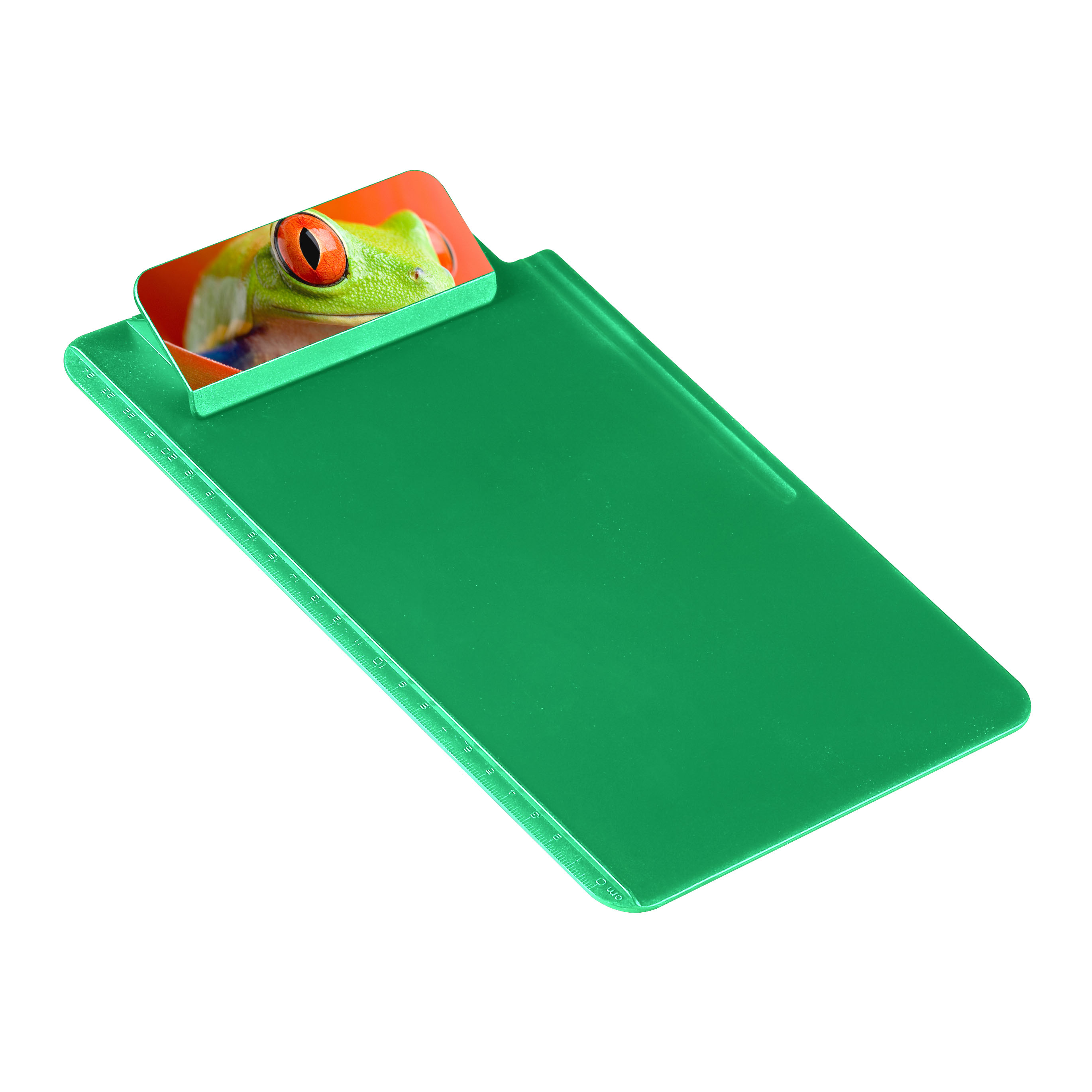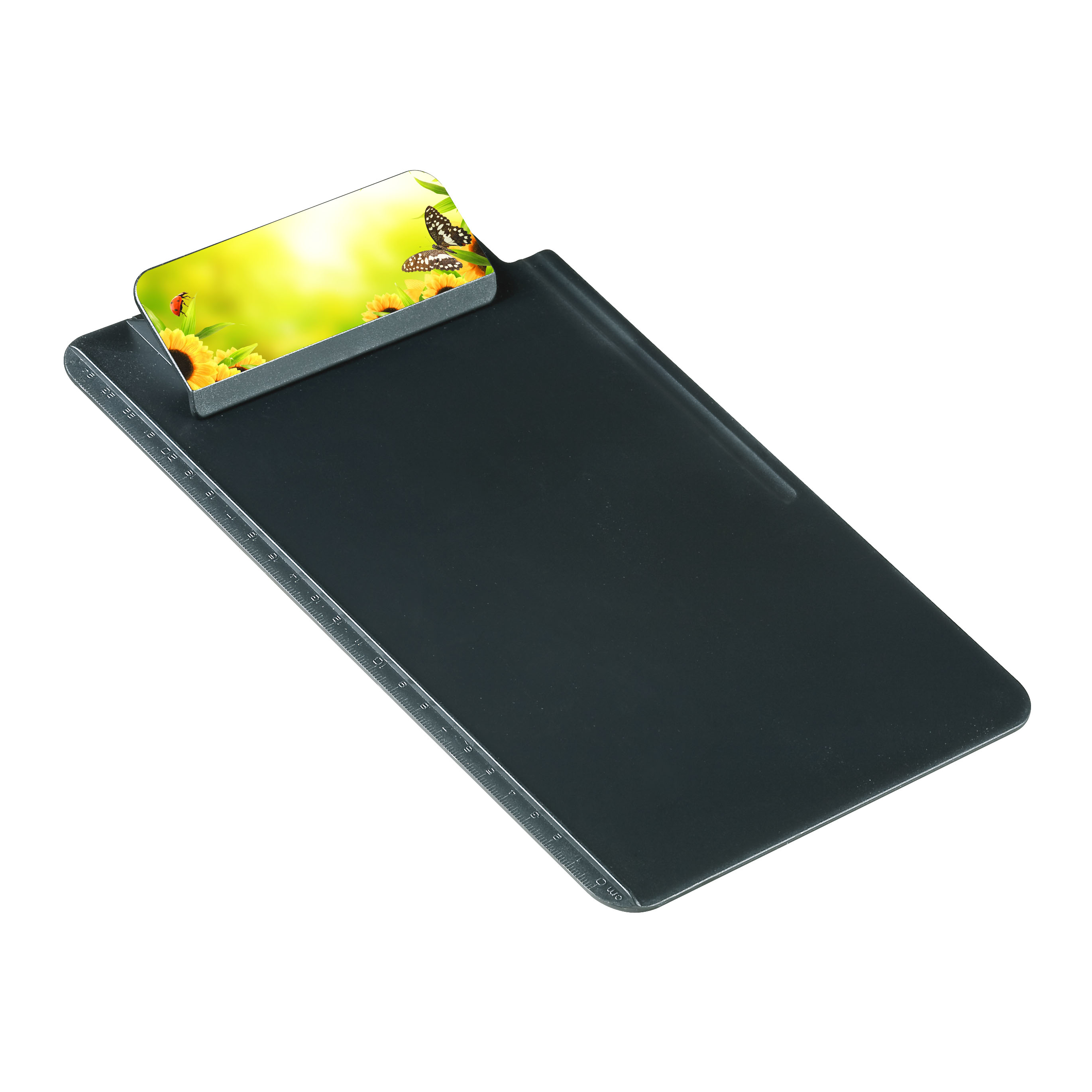 DIN A5 Klemmbrett mit Anlegeleiste, Stifteinkerbung und Skalierung.