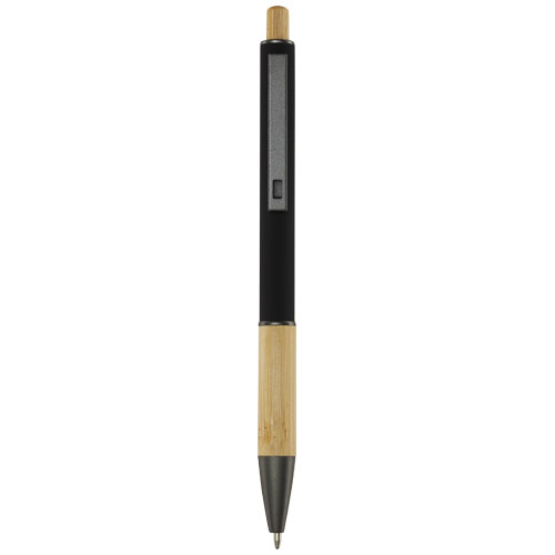 Der Darius Kugelschreiber wird aus recyceltem Aluminium hergestellt, was weniger Energie benötigt als die Herstellung von Aluminium aus Rohstoffen. Es reduziert außerdem die Abfallmenge auf Mülldeponien und trägt dazu bei, natürliche Ressourcen zu schonen und Treibhausgasemissionen zu reduzieren. Der Druckknopf und der untere Teil des Schafts sind aus Bambus gefertigt. Tintenfarbe: Schwarz. Schreiblänge: 800 Meter. Spitzengröße: 1,00 mm.