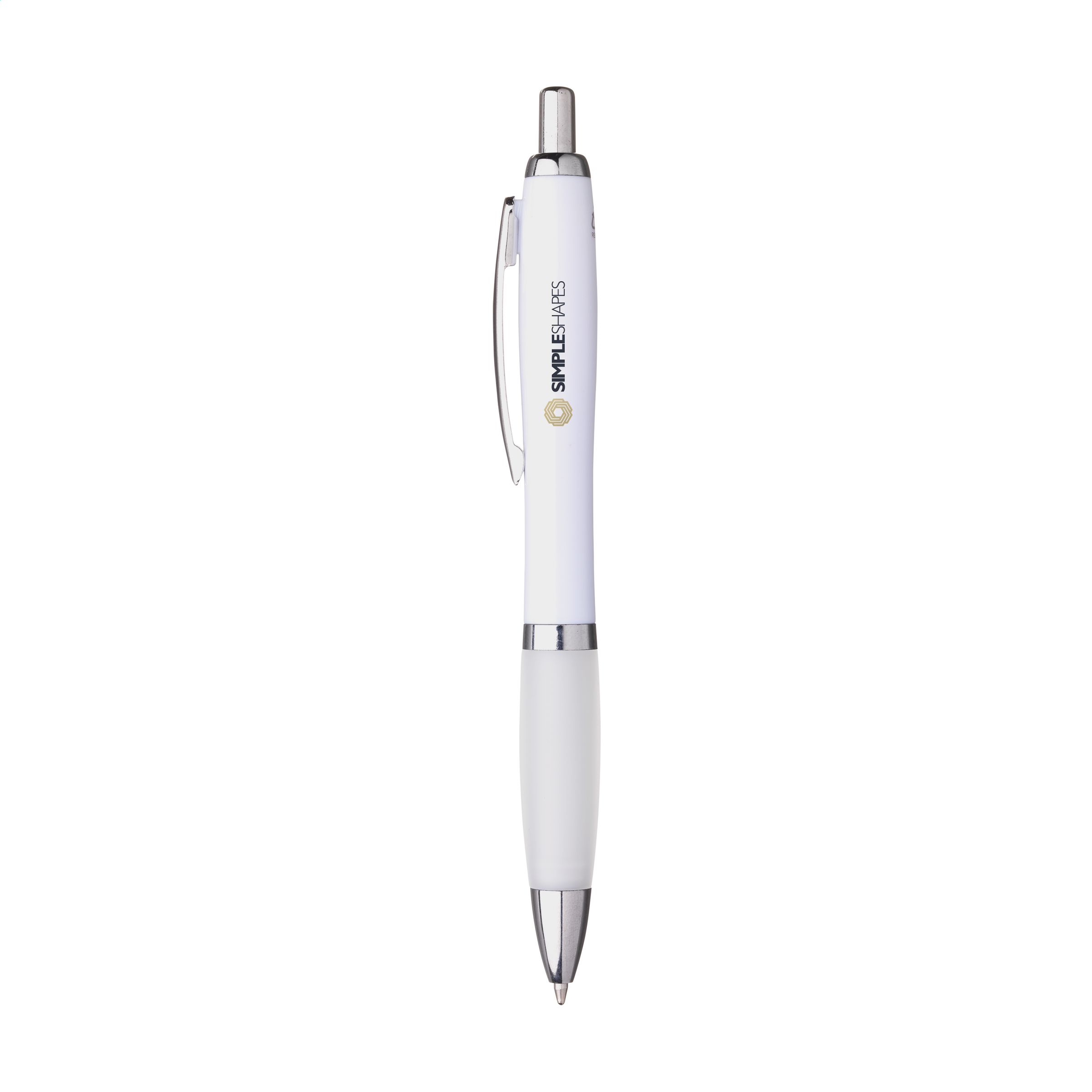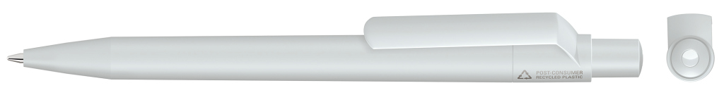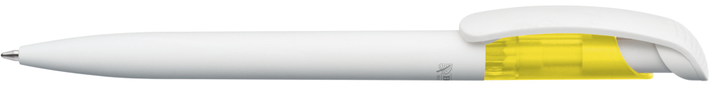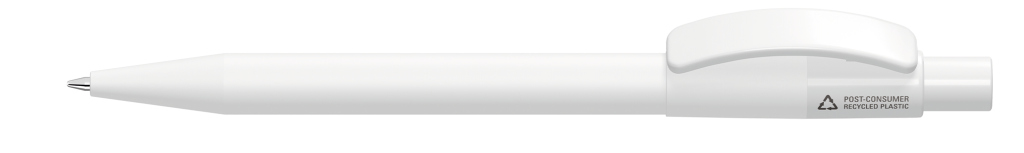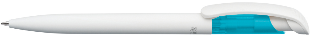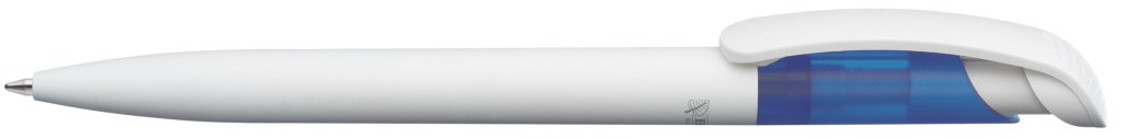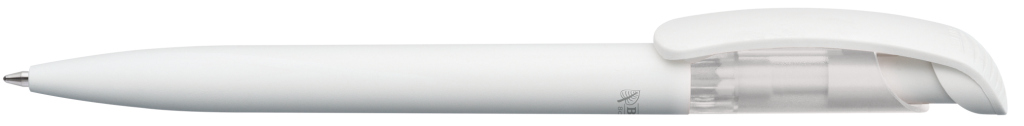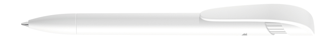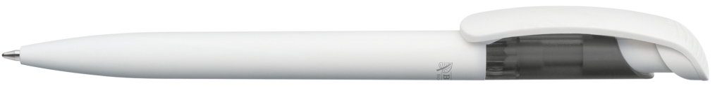 Ein Streuartikel wie er sein soll: Preisgünstig und ansprechend. Druckkugelschreiber hergestellt in Deutschland. Schaft und Drucker in elegantem Weiß, Clip transparent. Große Druckflächen auf Schaft und Clip. Ausgestattet ist dieses Schreibgerät mit einer Qualitätsmine Jogger.