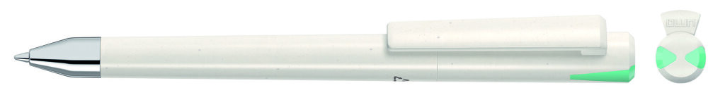 Ein wirkliche Alternative. Zu 80 % aus nachwachsenden, kompostierbaren Werkstoffen auf Cellulosebasis hergestellt. Die farbige Mechanikhülse gestattet die Umsetzung von CI-Farben.Ein Kugelschreiber für Freunde der Technik. Die verzahnte Mechanik greift beim Drücken passgenau ineinander. Ausgestattet ist dieses in Deutschland hergestellte Schreibgerät mit einer Qualitätsmine Jogger. Aufgrund des Naturmaterials sind leichte Farbschwankungen bei Schaft und Clip möglich.