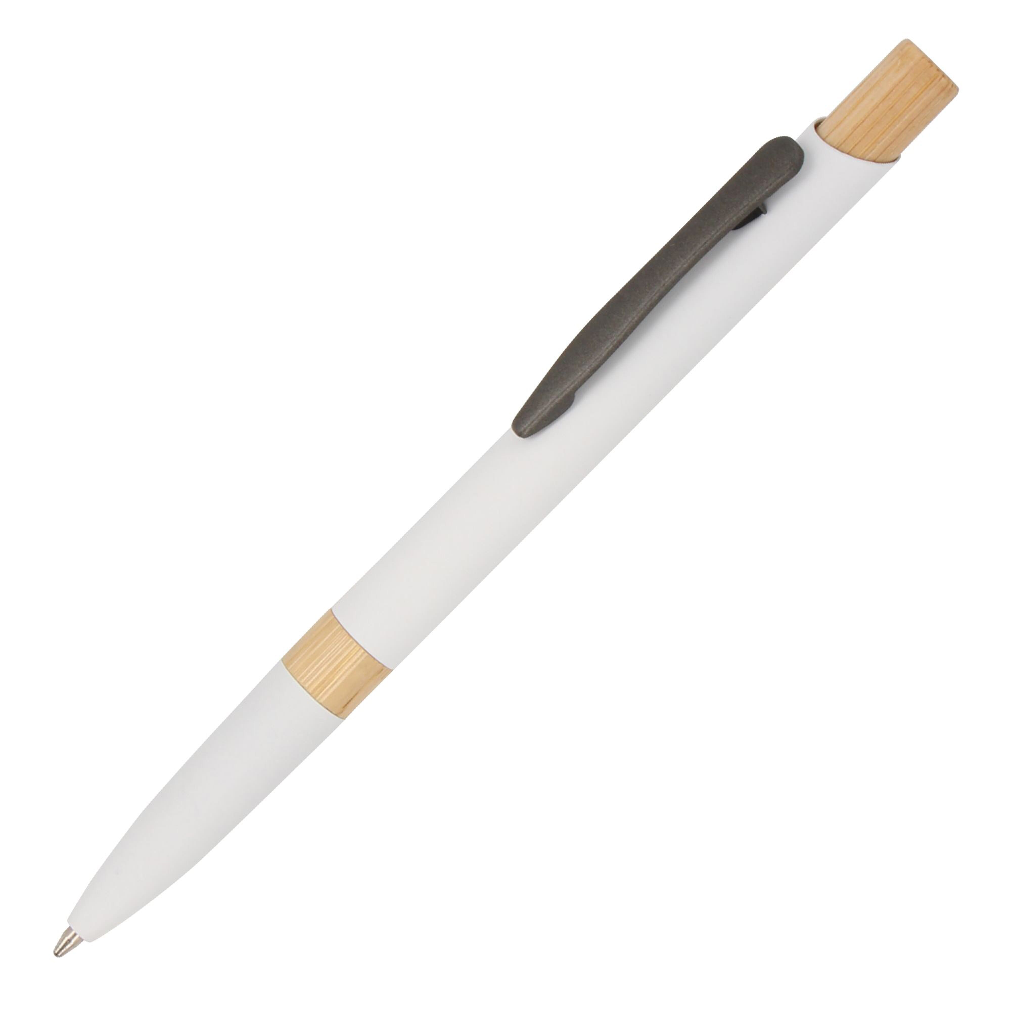 <p>Bambus Kugelschreiber mit Spitze, Clip, Drücker und Ringen am Schaft aus Weizenstroh. Der auf dem Drücker platzierte Touchpen, für die Bedienung von Smartphone-Displays, gibt es in sechs Farben. Ein nachhaltiger und kreativer Werbeartikel zum Verschenken. </p><ul><li>Mechanismus: Druckmechanismus</li><li>Standardschreibfarben: blau</li></ul>