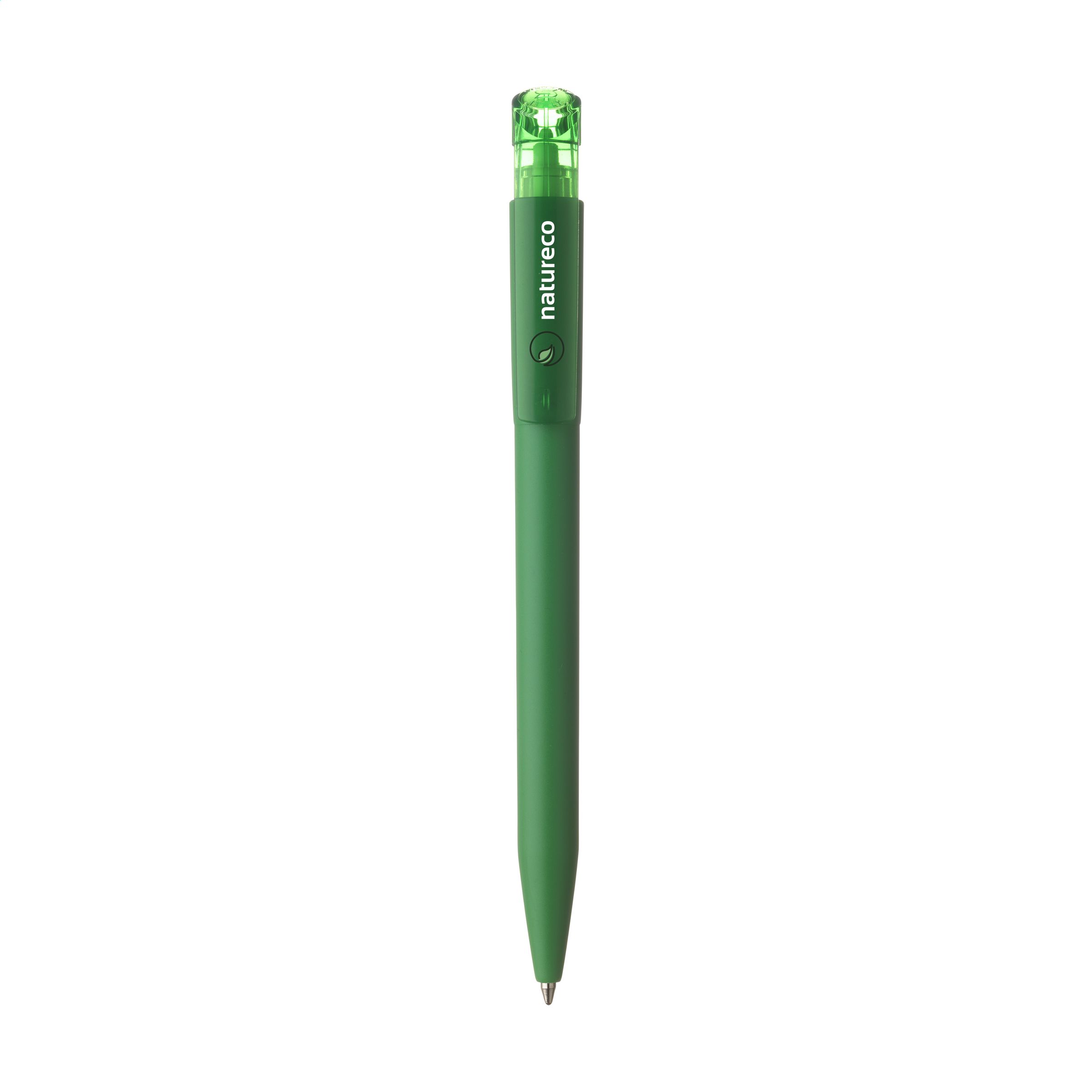 Umweltfreundlicher Kugelschreiber mit Klickmechanismus, einem Schaft aus biologisch abbaubarem Papiermaterial und Verzierungen aus Mais-Kunststoff in verschiedenen Farben. Die Farbe des Recyclingkartons kann variieren.