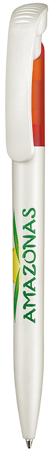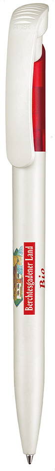 Eine wirkliche Alternative. Druckkugelschreiber mit zweiteiligem Schaft und integriertem Clip-Drücker. Hochglänzende Oberflächen. Aus nachwachsenden, kompostierbaren Werkstoffen auf Cellulosebasis hergestellt. Ein kleiner Druck auf der Rückseite informiert über die Besonderheit des Materials. Große Rundum-Druckfläche auf dem Schaft. Ausgestattet ist dieses in Deutschland hergestellte Schreibgerät mit einer blau schreibenden Qualitätsmine JOGGER SOFT.