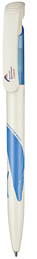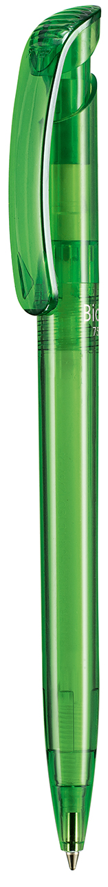 Absolute Neuheit: Transparenter Bio-Kunststoff ! Ein wirkliche Alternative. Zu 75 % aus nachwachsenden, kompostierbaren Werkstoffen auf Cellulosebasis hergestellt. Ein kleiner Druck auf der Rückseite informiert über die Besonderheit des Materials. Ausgestattet ist dieses in Deutschland hergestellte Schreibgerät mit einer Qualitätsmine Marathon.