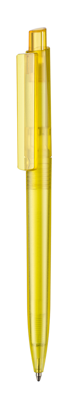Eine ausgeklügelte Formensprache kennzeichnet diesen in Deutschland hergestellten Druckkugelschreiber. Das Gehäuse in Frozen-Optik harmoniert mit dem transparenten Clip und Drücker. Von der Spitze her zum Drücker verändert sich der Schaft von rund in eine interessante Dreikantform. Schaft und Clip bieten ausreichend große Druckflächen für Ihre Werbung. Ausgestattet ist dieses Schreibgerät mit einer weich schreibenden Qualitätsmine MARATHON SOFT. Lieferbar außerdem mit Gelmine.