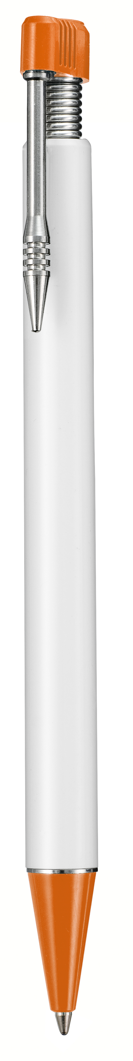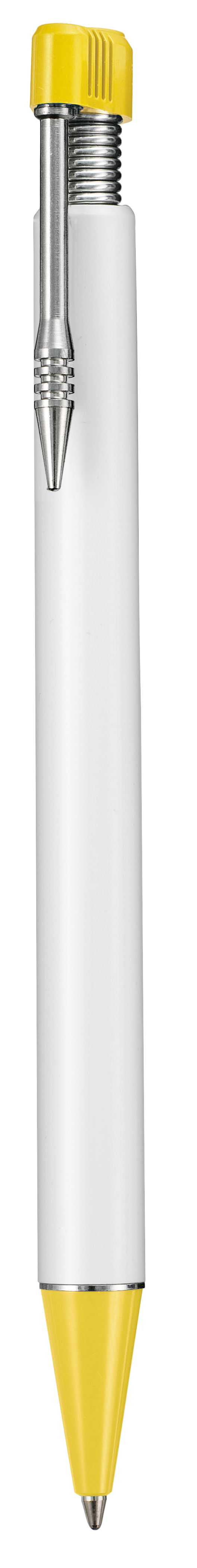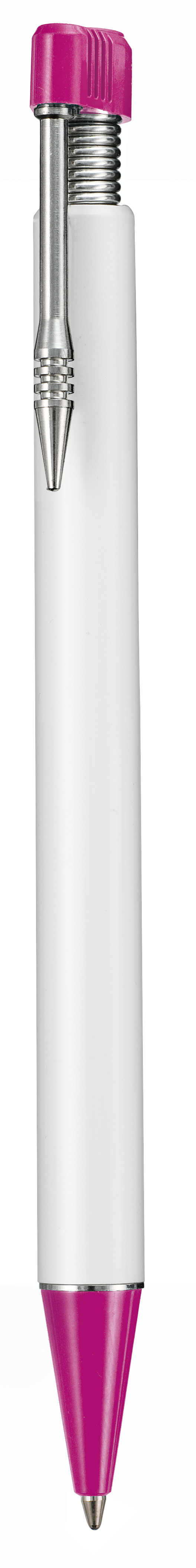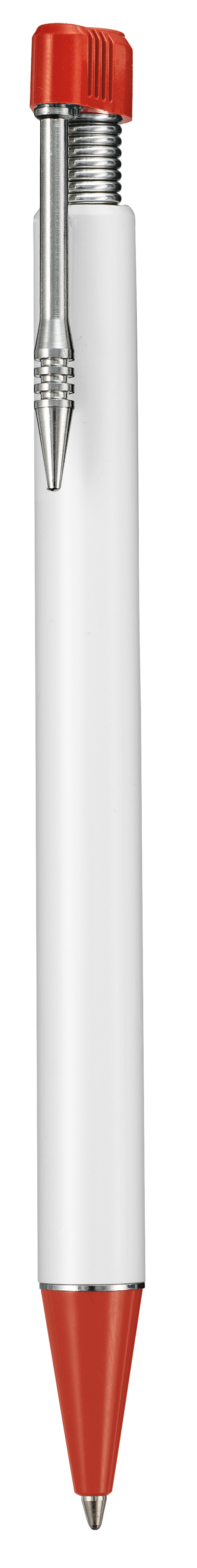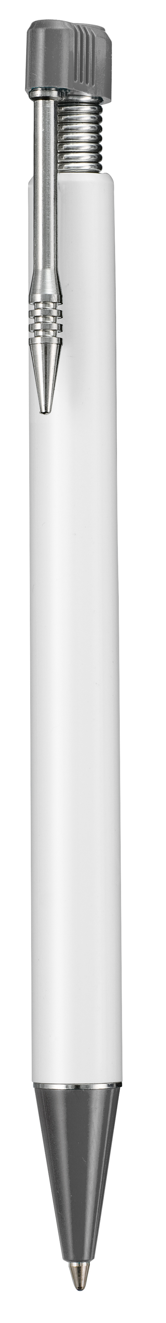 Wertiger, innovativer Druckkugelschreiber "made in Germany". Der Stahlclip ist auf einer beweglichen Drückerfeder befestigt und somit unabbrechbar. Der lange, schlanke Schaft hat keine Trennung und bietet so enorm viel Platz für Werbedrucke. Ein feiner Metallring in der Spitze rundet das elegante Design ab. Ausgestattet ist dieses Schreibgerät mit einer Qualitätsmine Jogger.