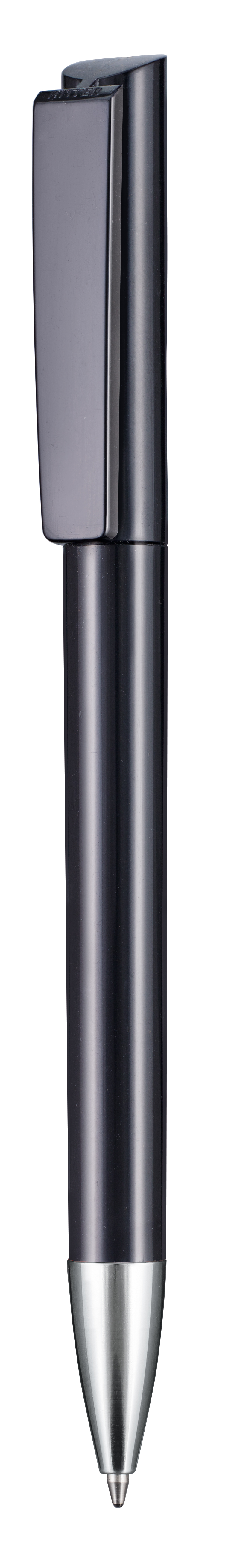 Kugelschreiber mit Drehmechanik und angespritztem Clip. Glänzende Oberflächen und Metallspitze vermitteln Wertigkeit. Gutes Preis-Leistungsverhältnis. Ausgestattet ist dieses Schreibgerät mit einer blau schreibenden Budget-Großraummine.