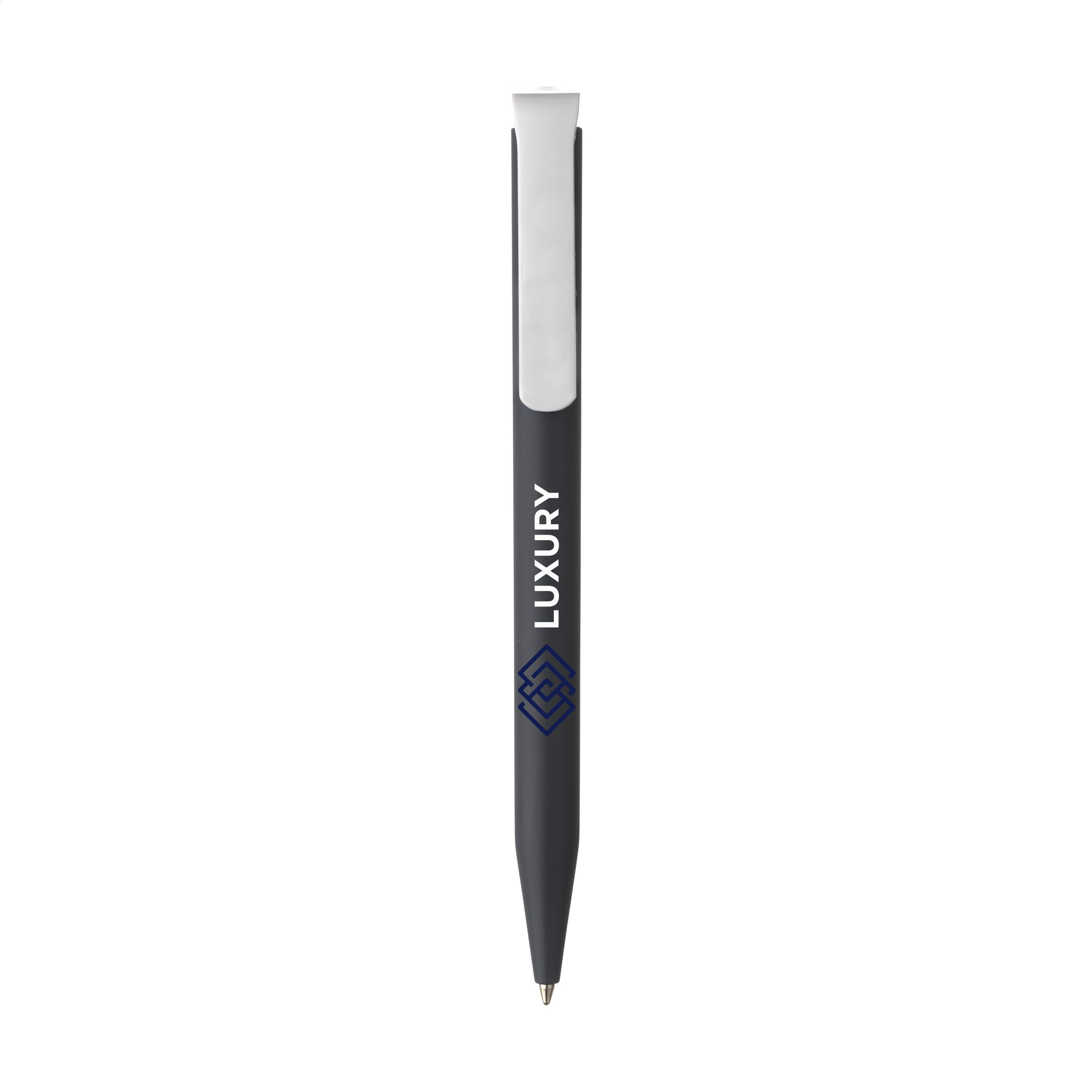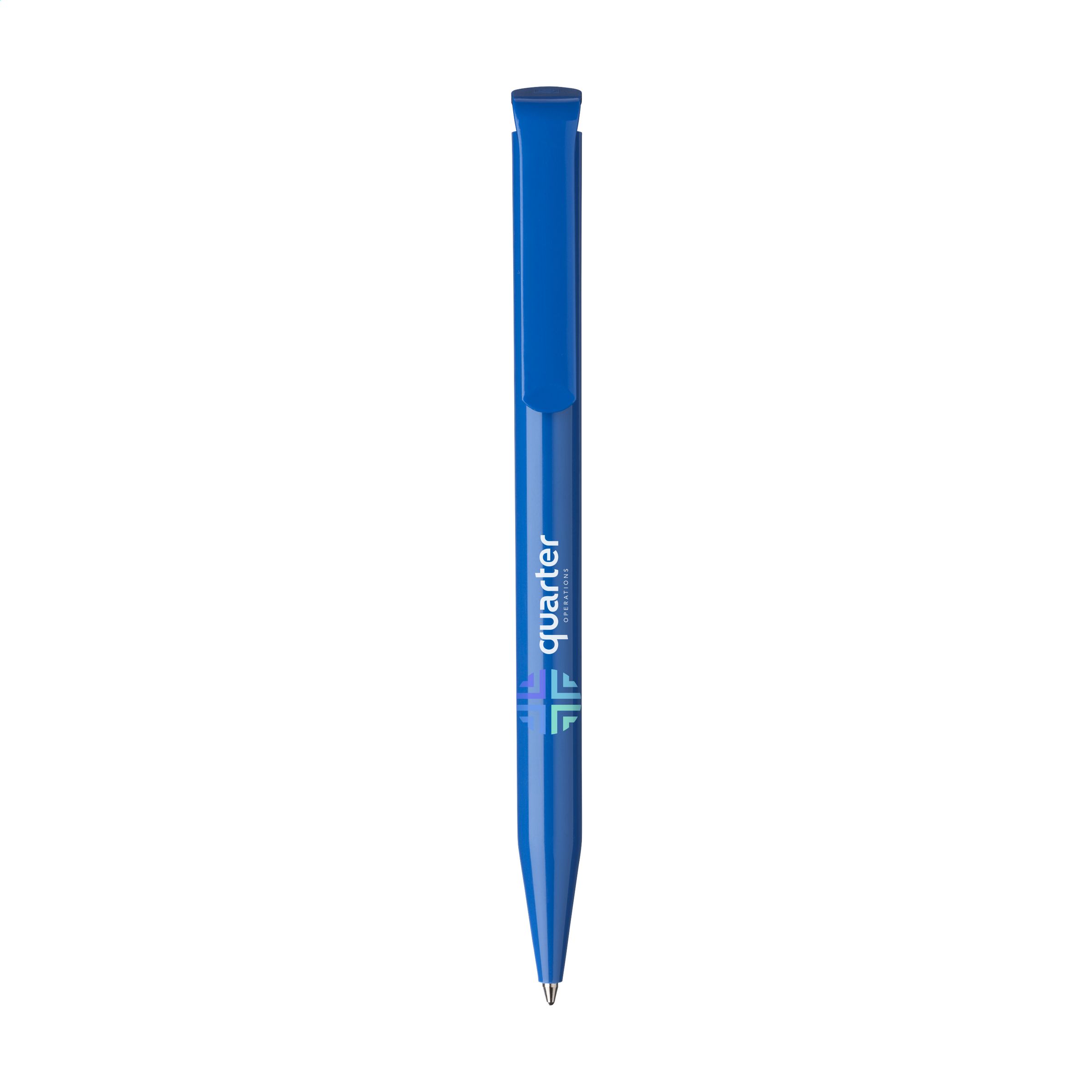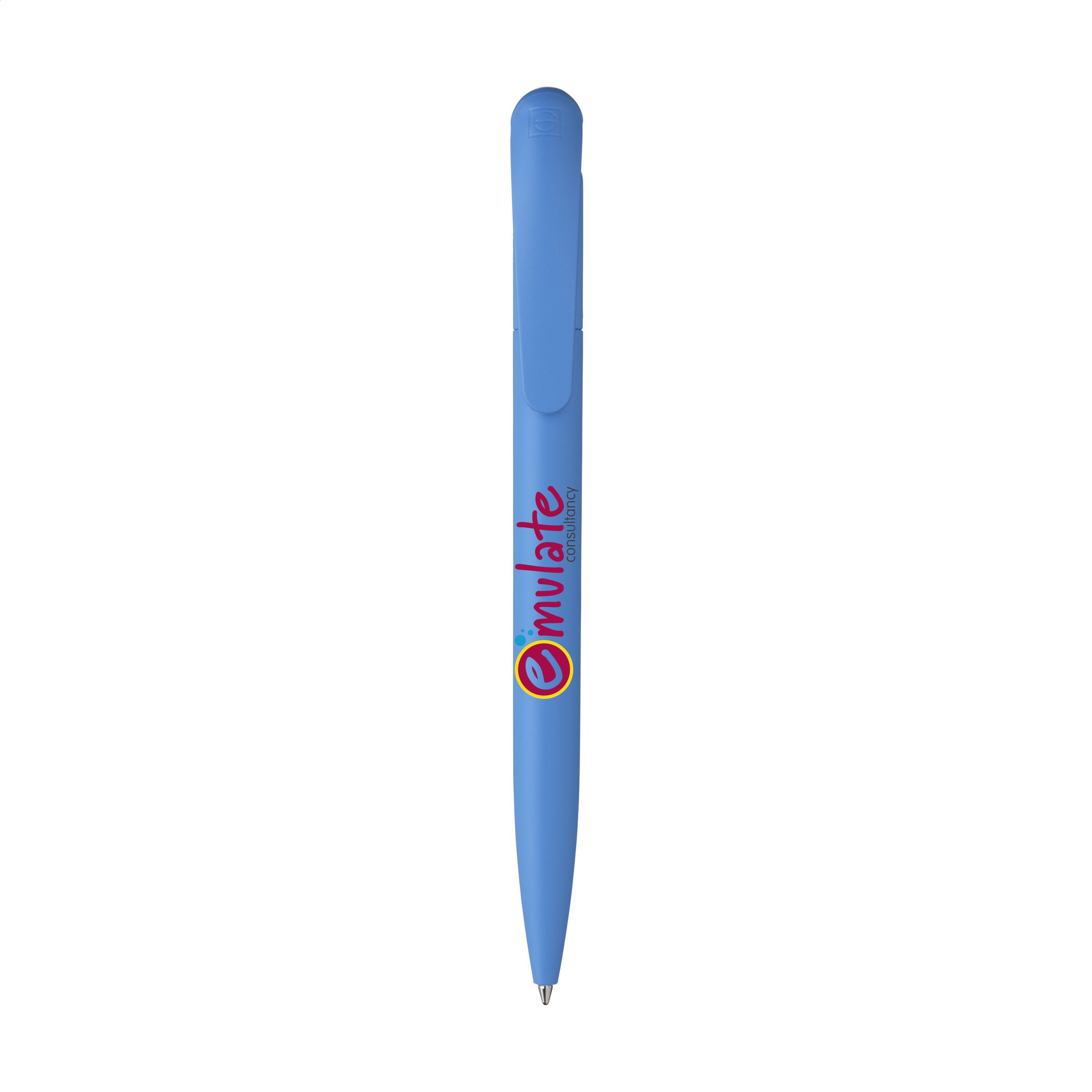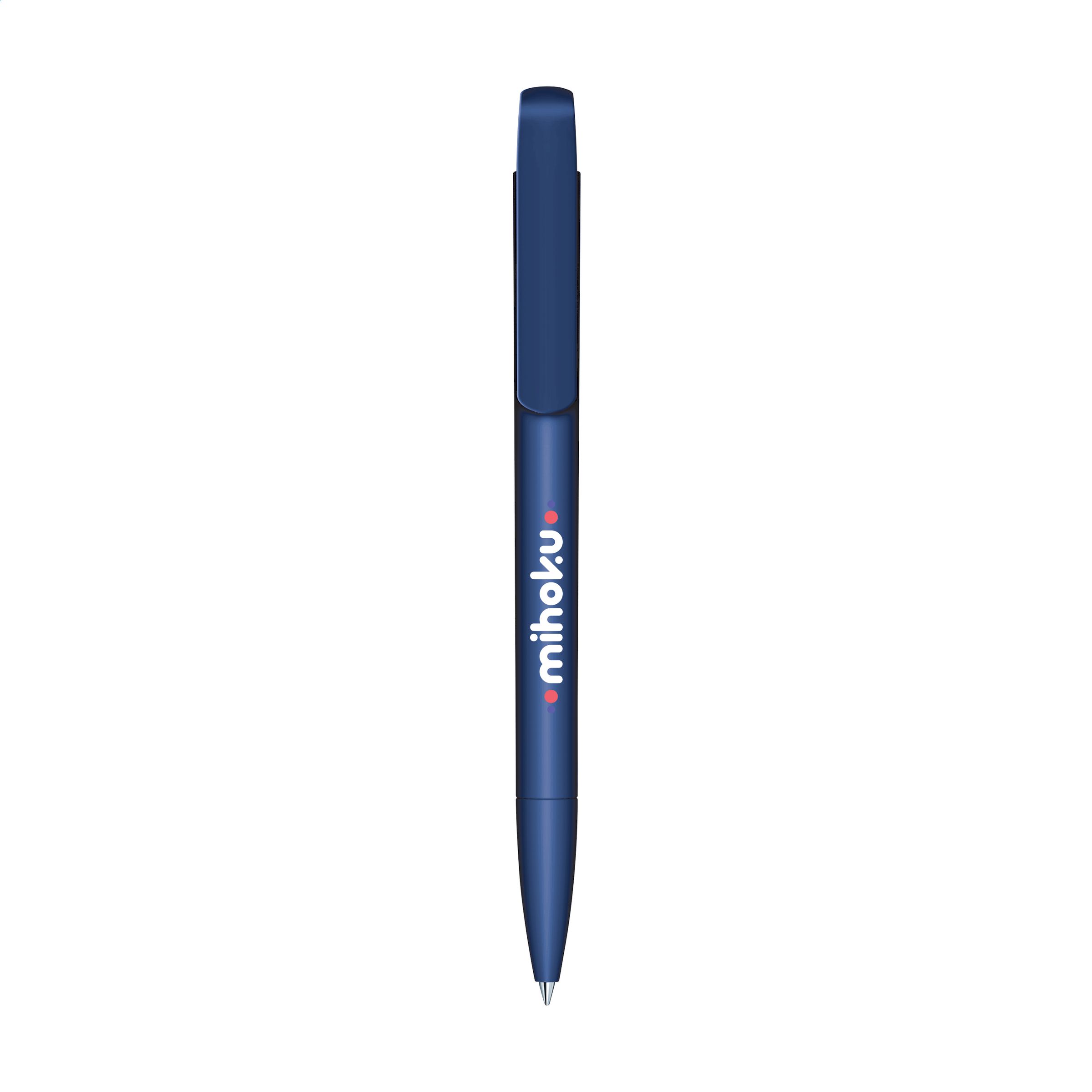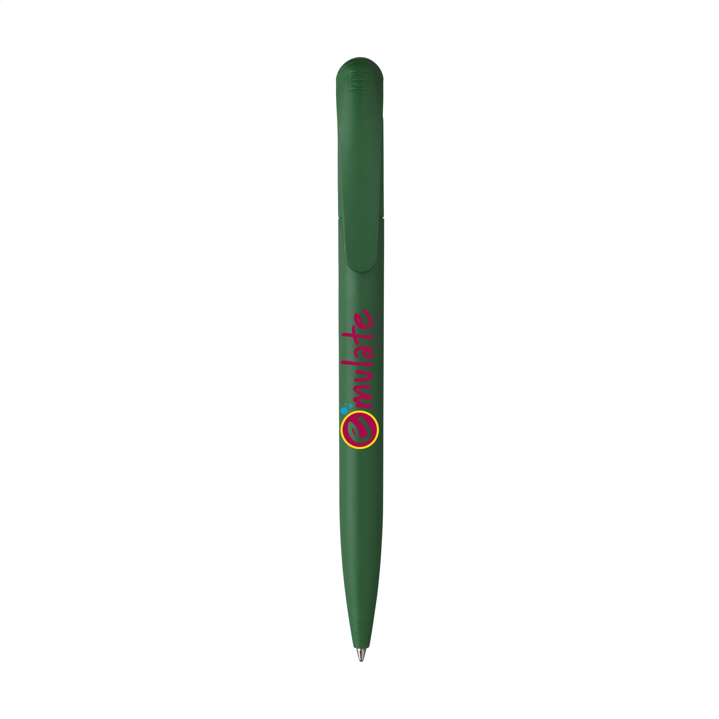 Blauschreibender Kugelschreiber der Marke Senator®. Der matte Griff besteht aus PLA-Granulat auf Zuckerrohrbasis und ist daher biologisch abbaubar. Der Stift wird mit Ökostrom und zertifizierten Verfahren gemäß der Umweltnorm ISO 14001 hergestellt. Ausgestattet mit großzügigem Clip/Druckknopf. Made in Germany.