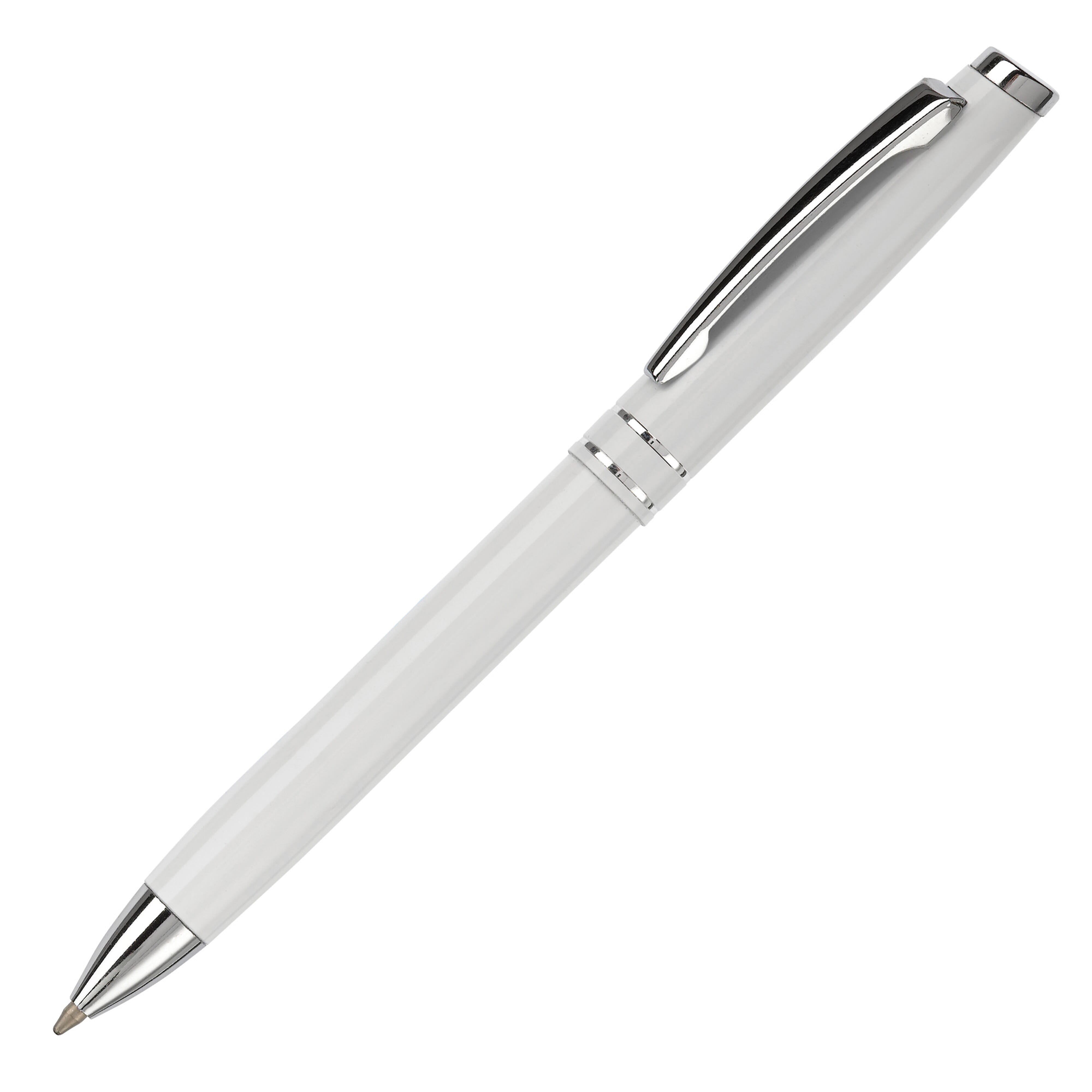 <p>Der Hardcolour Kugelschreiber Nora mit weißem Schaft und weißem Clip. Die Ringe im Drücker sind farbig. Ausgestattet mit einer blau schreibenden Jumbo-Refill-Mine. Der Druckkugelschreiber besteht aus ABS und wird in Europa hergestellt. Ab einer Abnahmemenge von 5.000 Stück sind eigene Farbkombinationen möglich.</p><ul><li>Mechanismus: Druckmechanismus</li><li>Standardschreibfarben: blau</li><li>Minenart: Jumbo refill</li><li>Optionale Schreibfarben: schwarz</li></ul>
