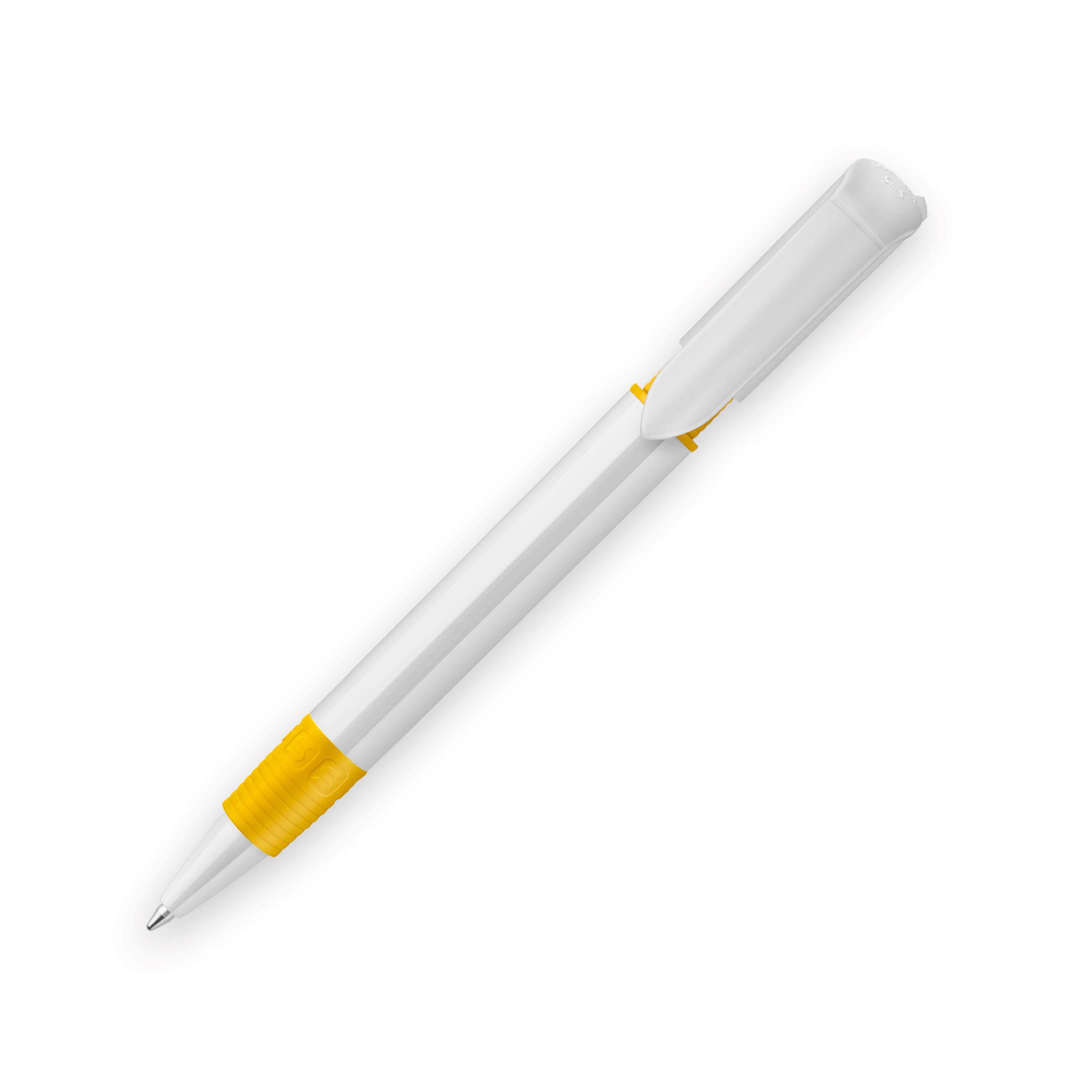 <p>Der S40-Grip Kugelschreiber ist ein beliebtes Modell, da der farbige Teil unter dem bedruckbaren Clip dem Stift Stil und Charakter verleiht und der Griff am Stift die selbe Farbe wie der Clip hat. Der weiße Schaft wird mit einem Logodruck veredelt. Druckkugelschreiber ausgestattet mit einer blau schreibenden Toppoint jumbo-Refill-Mine. Der Hardcolour-Kugelschreiber besteht aus ABS und wird in Europa hergestellt. Ab einer Abnahmemenge von 5.000 Stück sind eigene Farbkombinationen möglich.</p><ul><li>Mechanismus: Druckmechanismus</li><li>Standardschreibfarben: blau</li><li>Minenart: Jumbo refill</li><li>Optionale Schreibfarben: schwarz</li></ul>