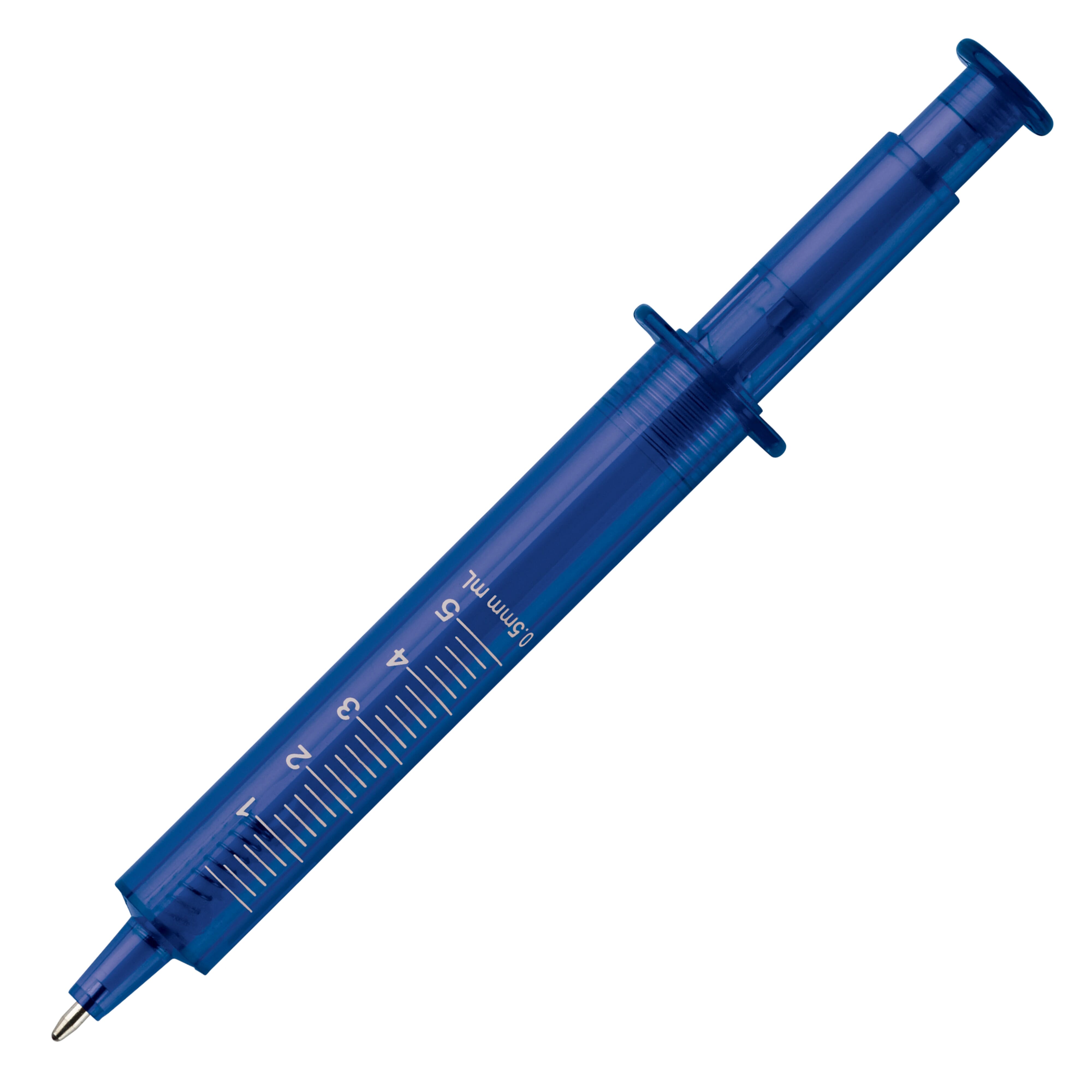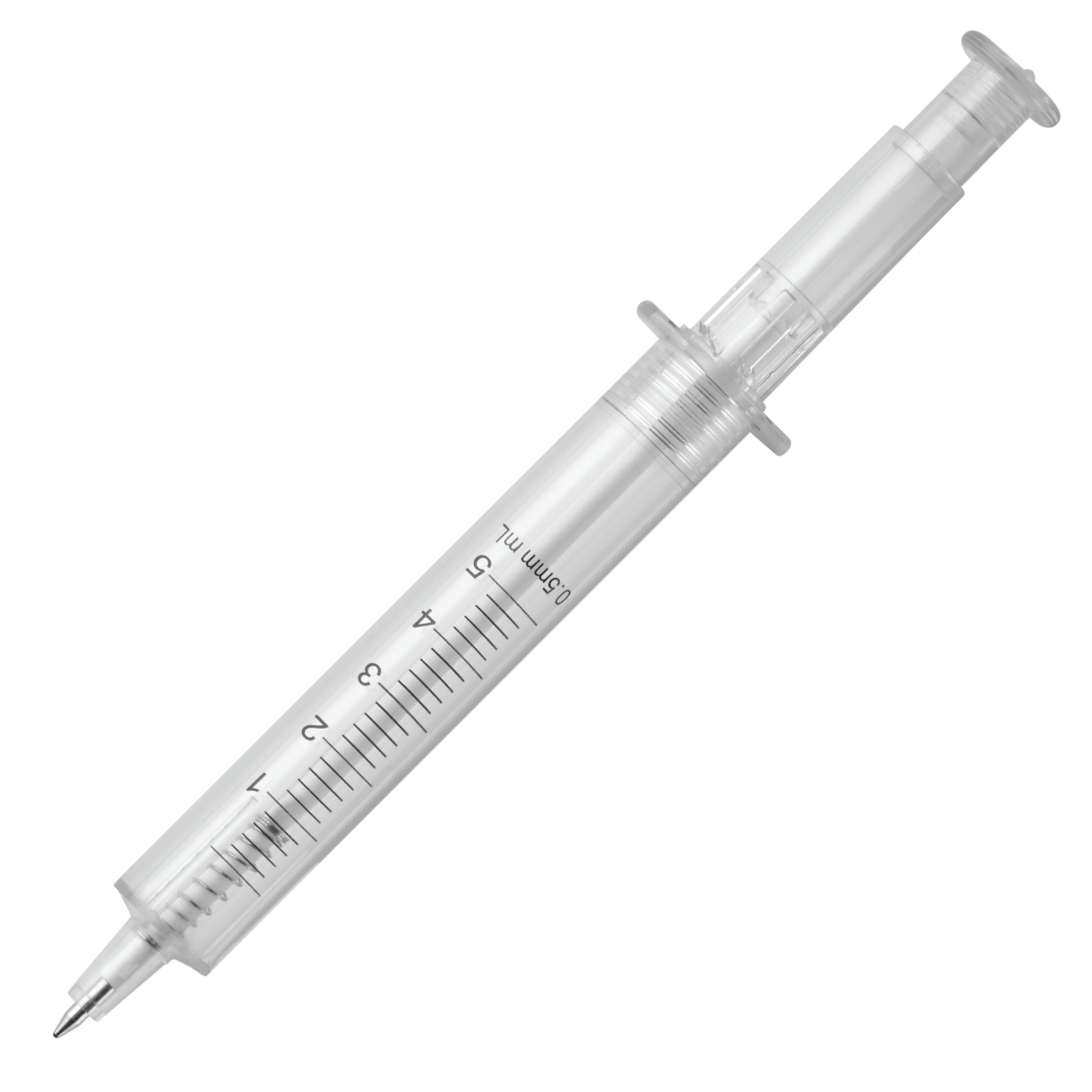 <p>Transparenter Injektionskugelschreiber in Spritzenform. In verschiedenen trendigen Farben erhältlich. </p><ul><li>Mechanismus: Druckmechanismus</li><li>Minenart: X-20</li></ul>