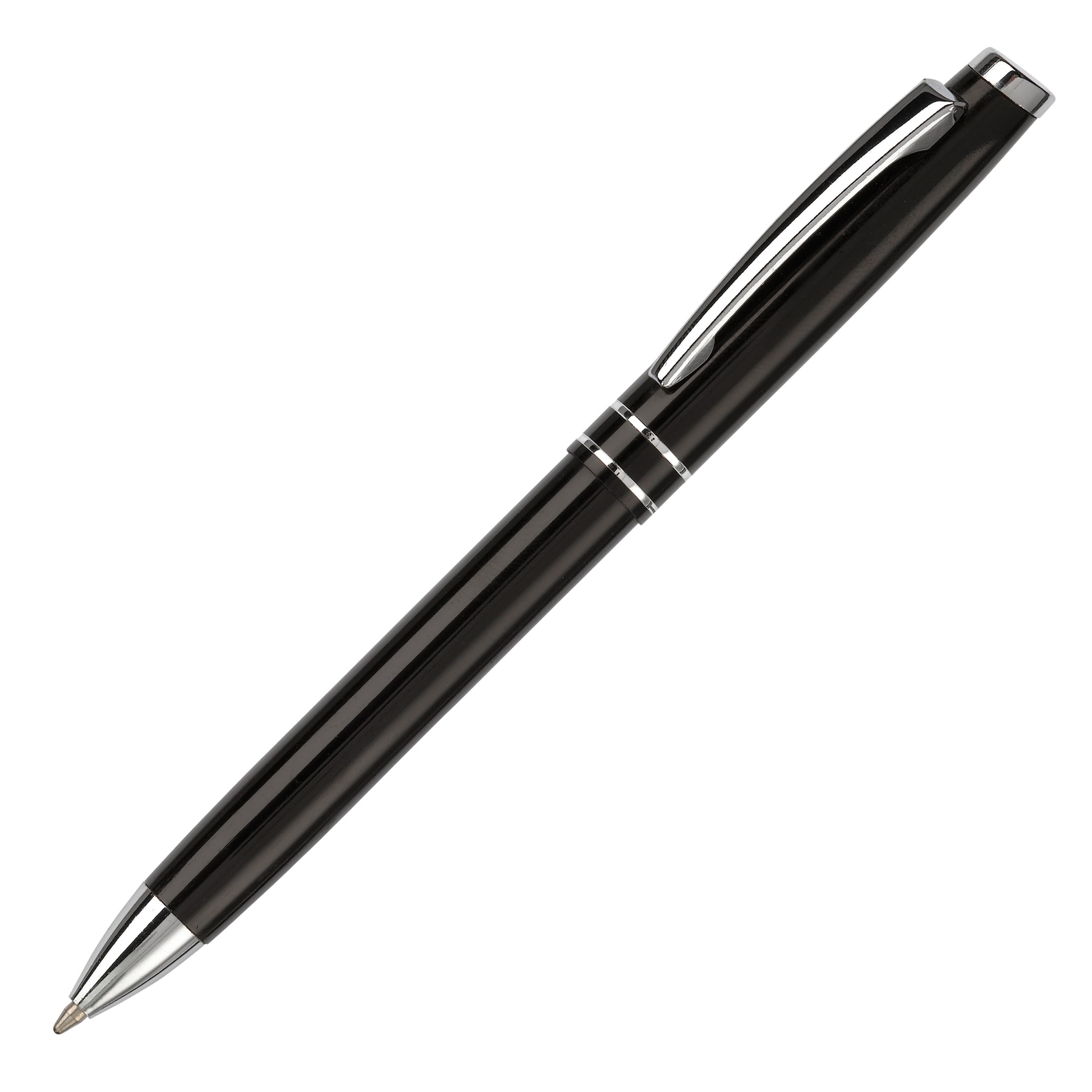 <p>Blauschreibender Aluminiumkugelschreiber mit zwei Ringen.</p><ul><li>Mechanismus: Druckmechanismus</li><li>Standardschreibfarben: blau</li><li>Minenart: Metal giant refill</li></ul>
